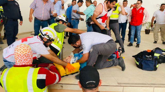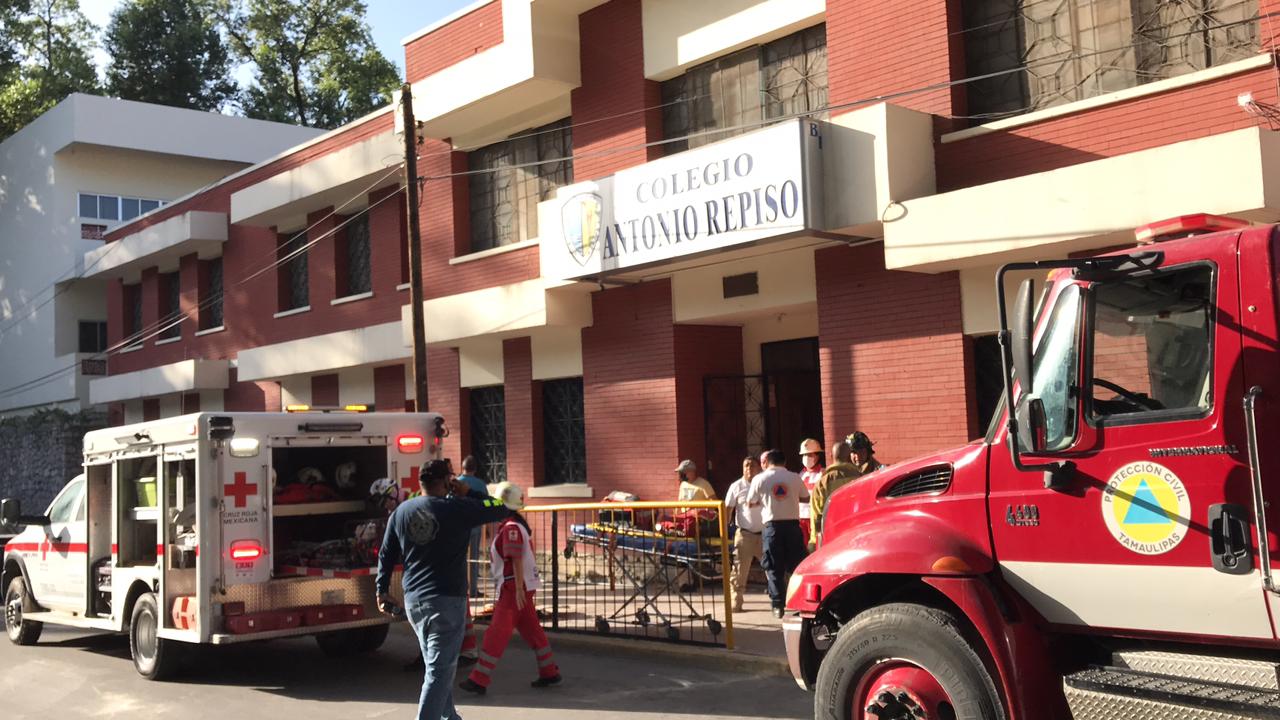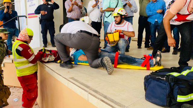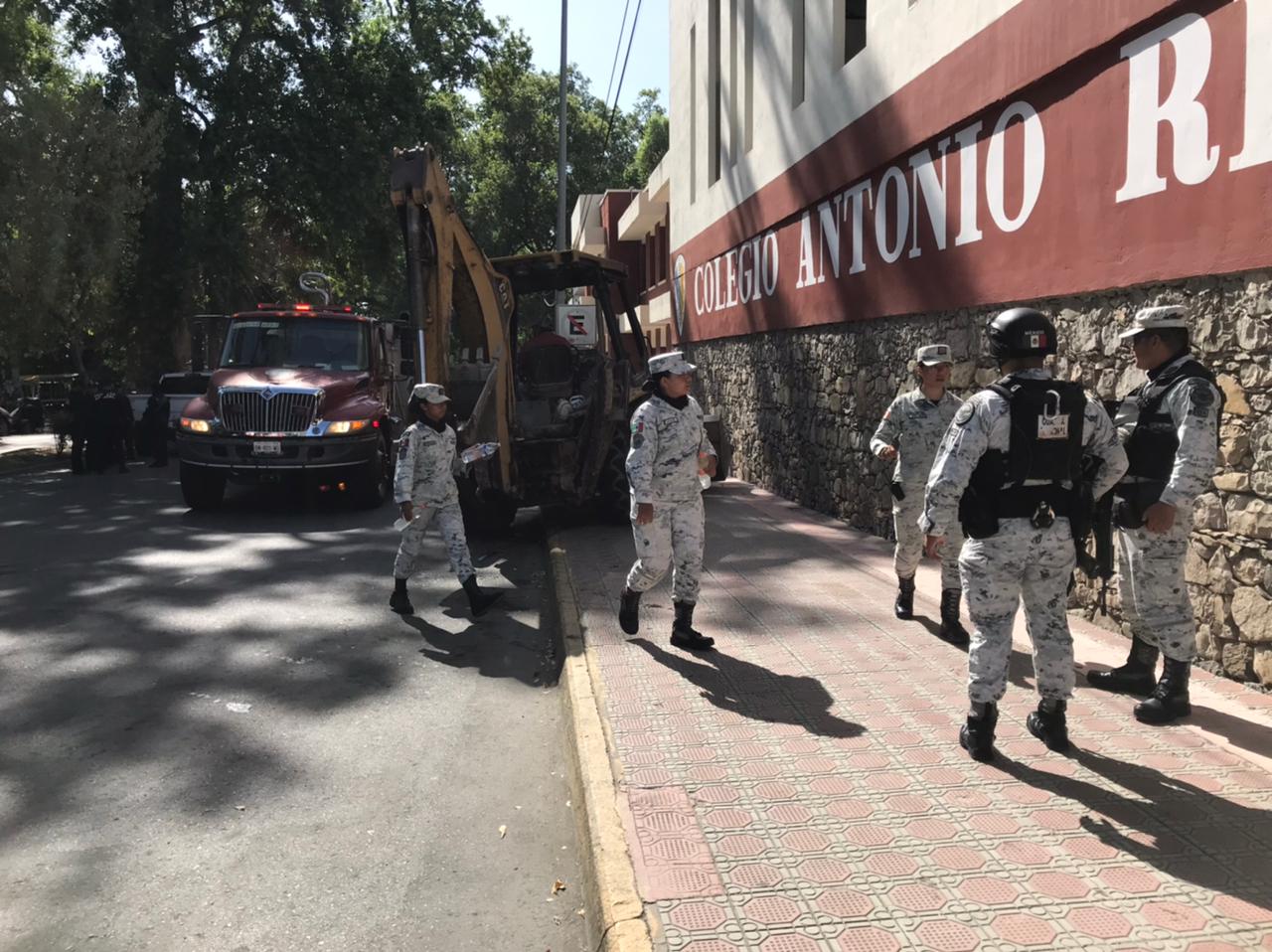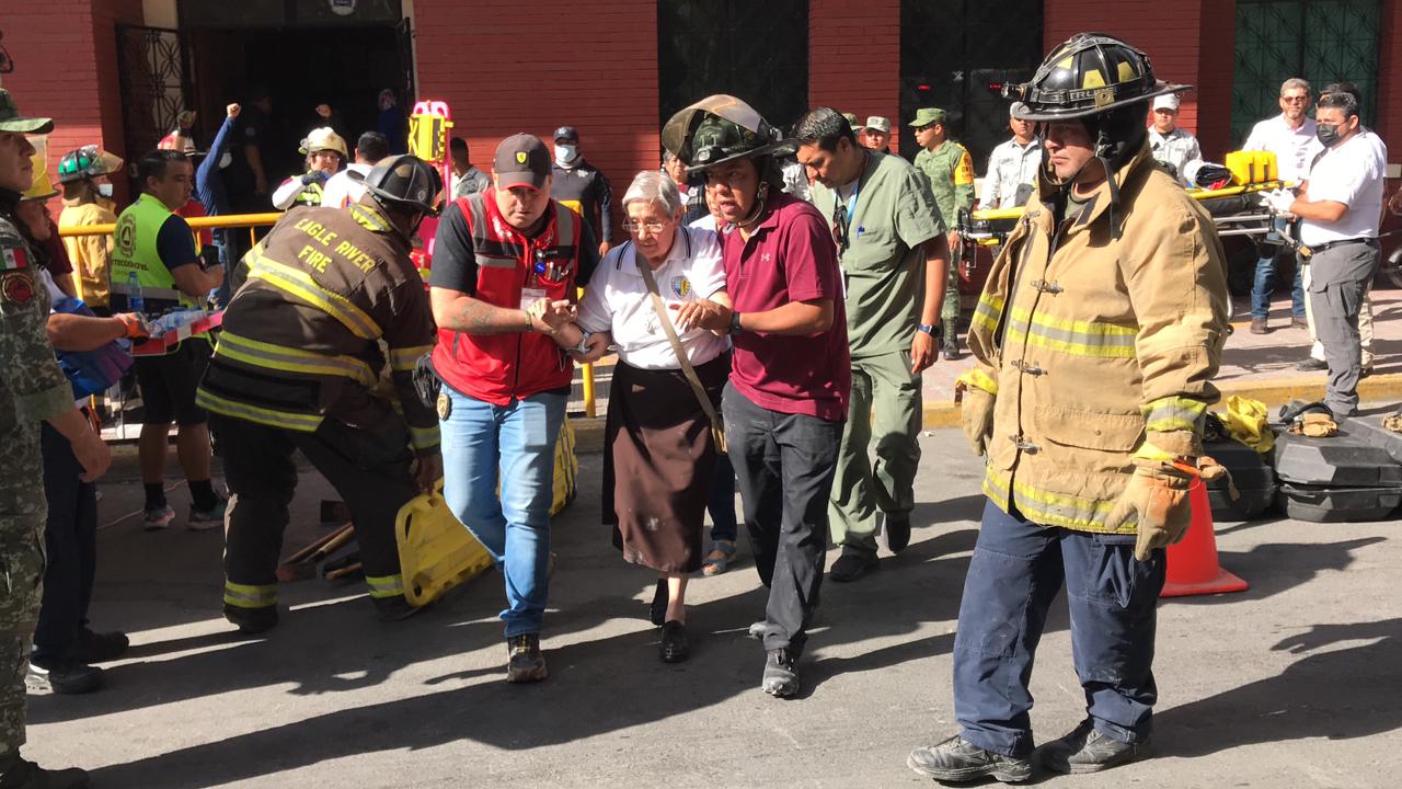 Corporaciones de Protección Civil Municipal y estatal, bomberos, SEDENA, Guardia Nacional y Estatal en operativo de rescate a personas atrapadas en derrumbe en el Colegio Antonio Repiso.