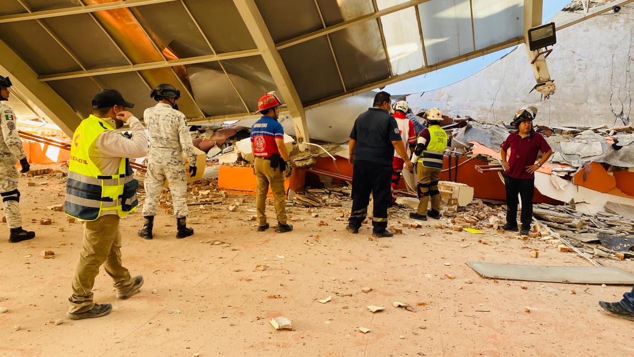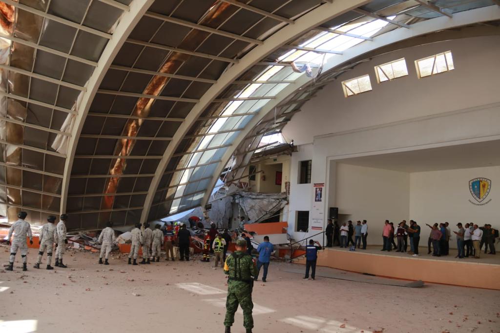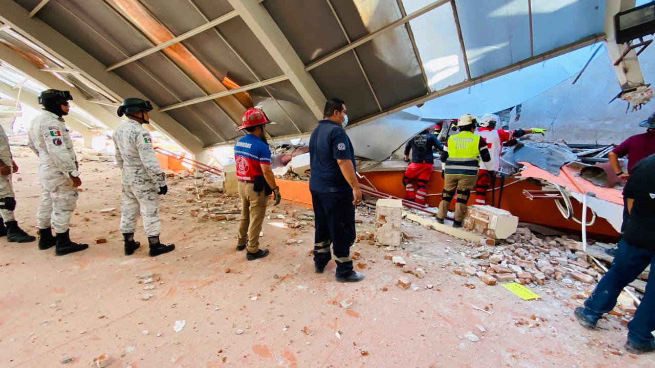 Sin embargo al llegar los cuerpos de emergencia, se percataron que había sido colapsada toda la estructura del techo domo de la explanada principal, que era soportado por unas vigas, las cueles fueron vencidas por el peso de la estructura.