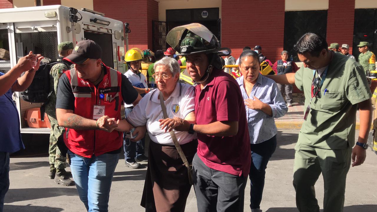 Ya lograron rescatar con éxito a la maestra atrapada bajo los escombros, actualmente solo quedan personal dentro de una oficina a salvo el cual no pueden salir debido a los escombros.