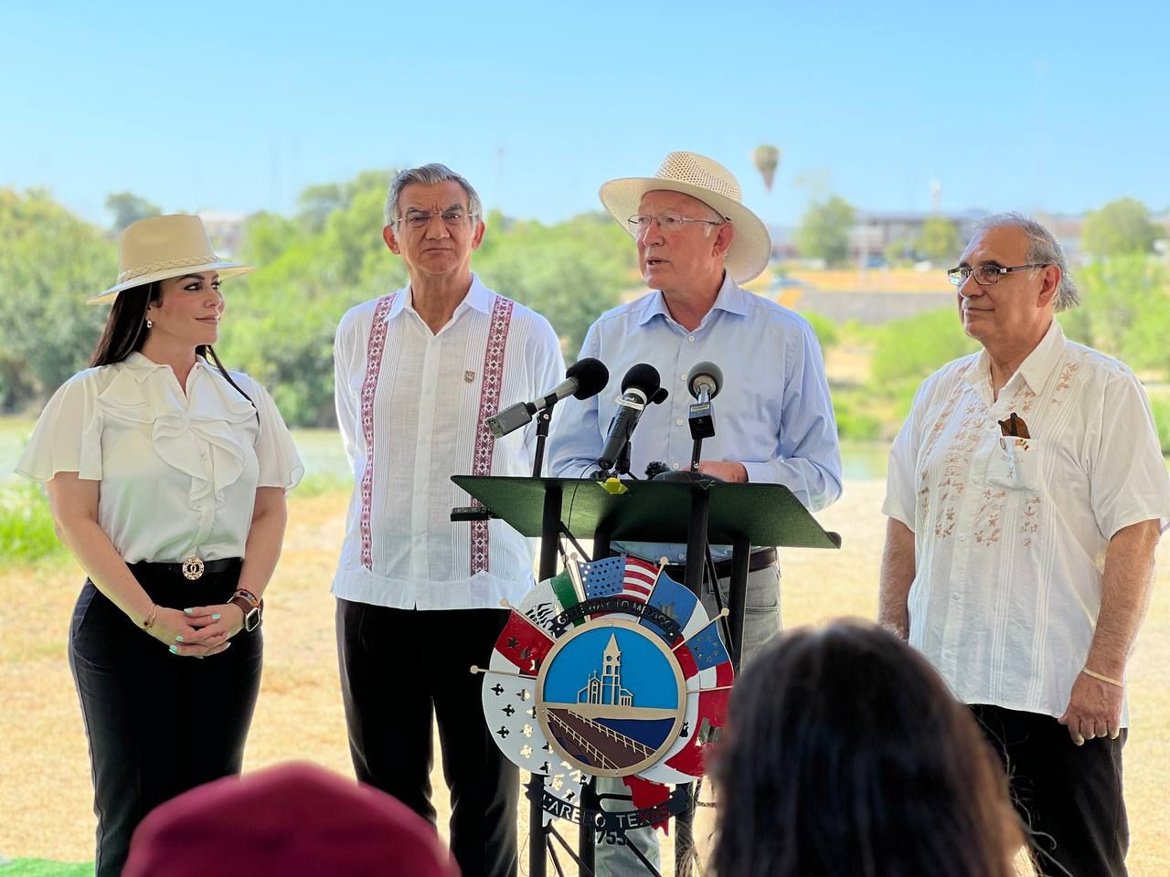 En las márgenes del río Bravo, en el lado americano y luego de una reunión privada y de realizar un recorrido por el sendero Las Palmas, abajo del Puente Internacional 2, para conocer el proyecto del Parque Binacional, el embajador y el gobernador coincidieron en la importancia de impulsar de manera conjunta la relación bilateral.
