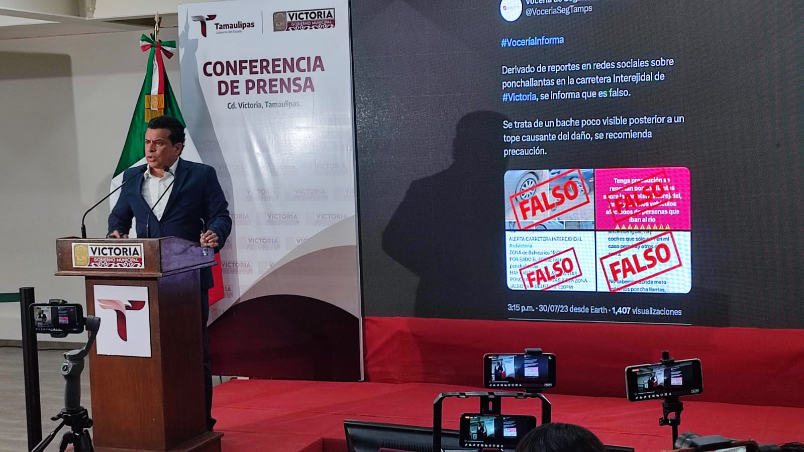 El alcalde recordó un incidente reciente en el que se alertó sobre la supuesta colocación de ponchallantas en la carretera interejidal, una afirmación que luego fue desmentida por la Vocería de Seguridad Pública. Hugo Reséndez Silva, secretario del Ayuntamiento, también mencionó el intento de crear alarma sobre una supuesta ola de robos en la ciudad.