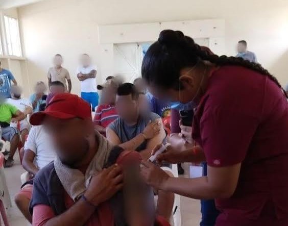 REYNOSA, TAMAULIPAS, 2 DE AGOSTO DE 2023.- Con el propósito de garantizar el derecho a la salud de las personas privadas de la libertad (PPLs) se realizó una jornada de vacunación, para aplicar más de 150 dosis de refuerzo contra COVID-19 al interior del Centro de Ejecución de Sanciones (CEDES) en el municipio de Reynosa.