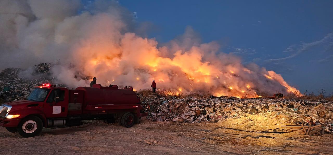 Cabe señalar que fue el pasado martes cuando se reportó el incendio en el relleno sanitario, el cual había quedado aparentemente controlado, sin embargo fue esta madrugada cuando de nueva cuenta se reavivó el fuego en el lugar.
