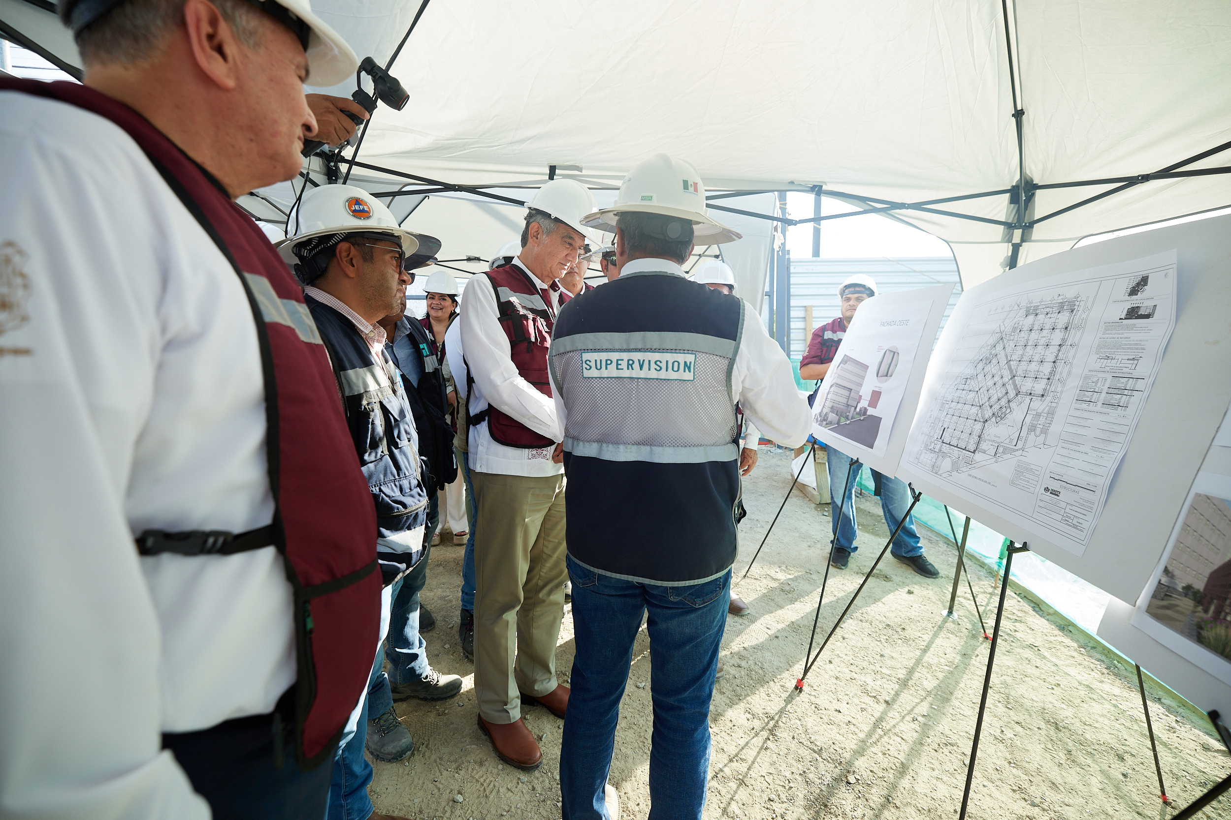 Acompañado por los alcaldes de Tampico y Altamira, Jesús Nader y Armando Martínez ; por el secretario de Obras Públicas, Pedro Cepeda Anaya y el secretario de Salud, Vicente Hernández Navarro, recorrieron las instalaciones de un importante avance y a la vez, dio instrucciones para atender algunas peticiones por parte de los constructores.