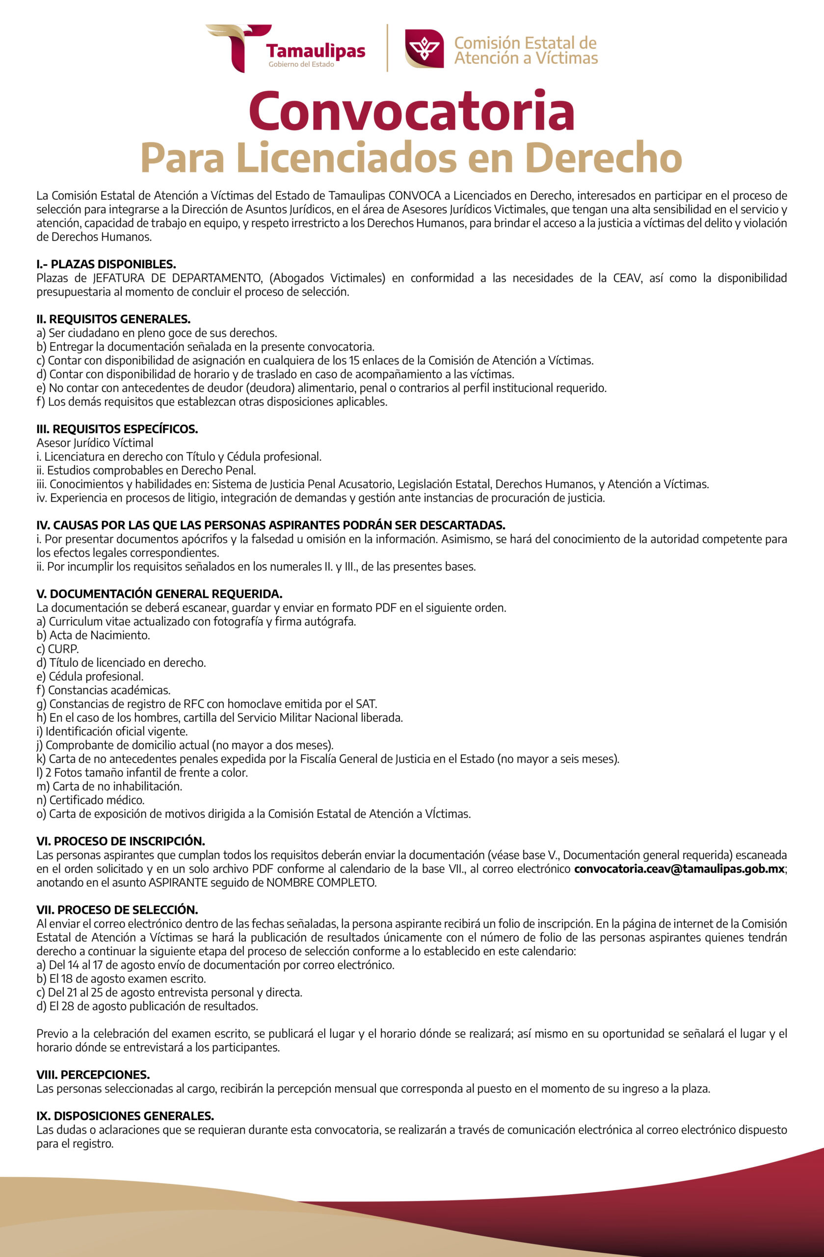 CD. VICTORIA, TAMAULIPAS, 12 DE AGOSTO DE 2023.- La Comisión Estatal de Atención a Víctimas de Tamaulipas, anuncia la apertura de la convocatoria para integrar a profesionales como