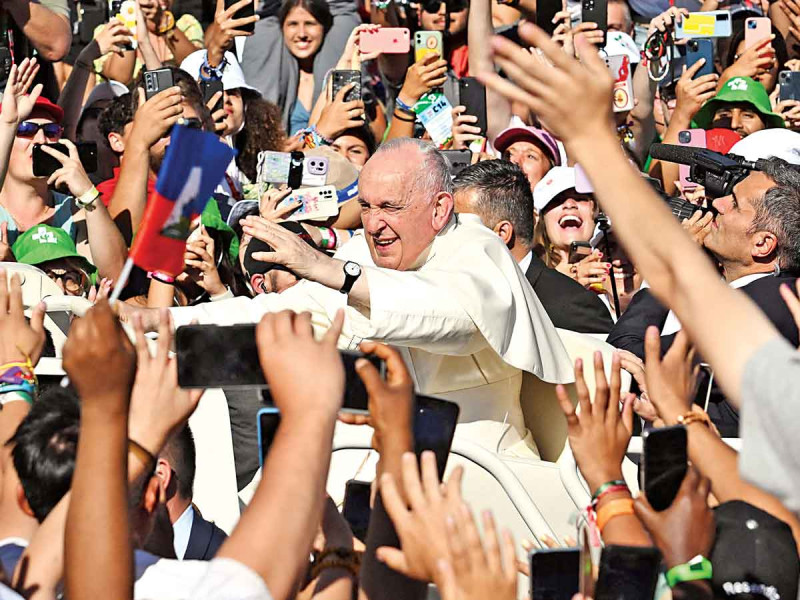El pontífice llegó en papamóvil a los jardines en el centro de la capital portuguesa, aclamado por miles de jóvenes fieles que le cantaban “¡Esta es la juventud del Papa!” y agitaban las coloridas banderas de numerosos países.