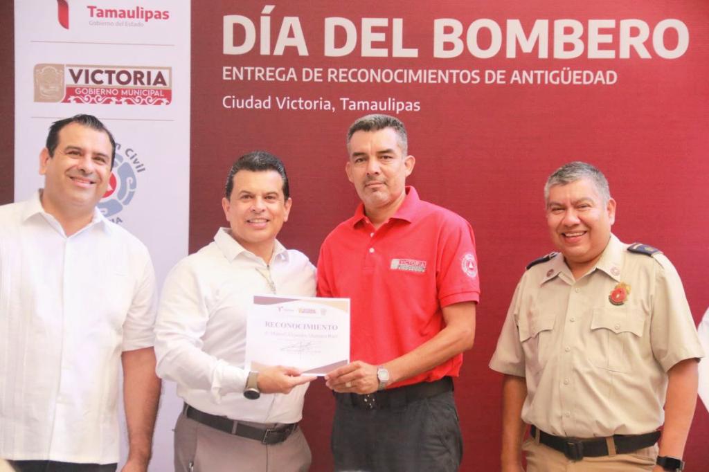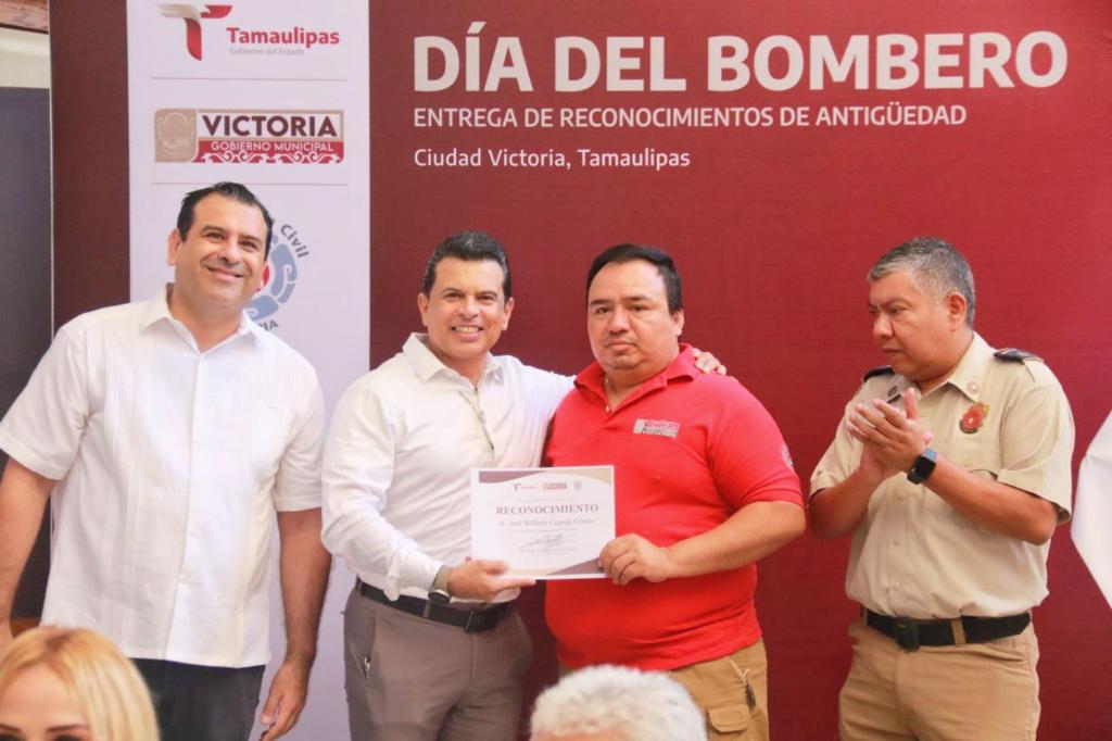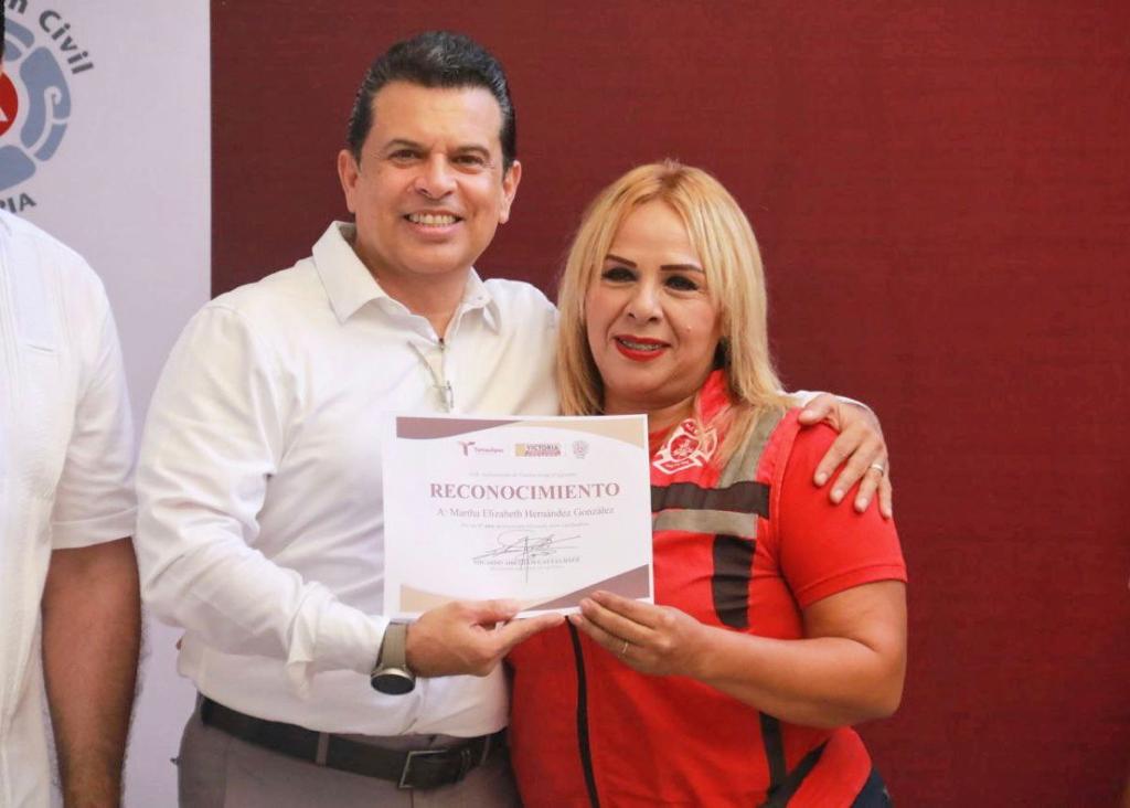 “Tienen ustedes mi gratitud y admiración por su labor invaluable de proteger a la población y su patrimonio en casos de desastre y accidentes, son ejemplo de valor y entrega al arriesgar su integridad por otra persona. Apreciamos su importante labor social, como sé, la aprecia el gobernador Américo Villarreal Anaya” expresó.