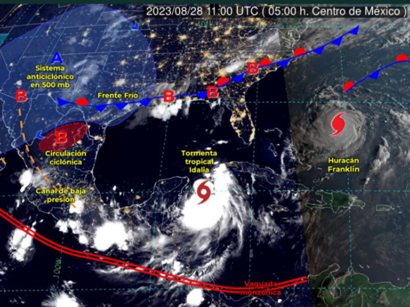 CD. DE MEXICO, 28 DEE AGOSTO DE 2023.- El huracán Franklin se fortaleció hasta alcanzar la categoría 4 en la mañana del lunes, según informó el Centro Nacional de Huracanes (CNH) de Estados Unidos en su último aviso.
