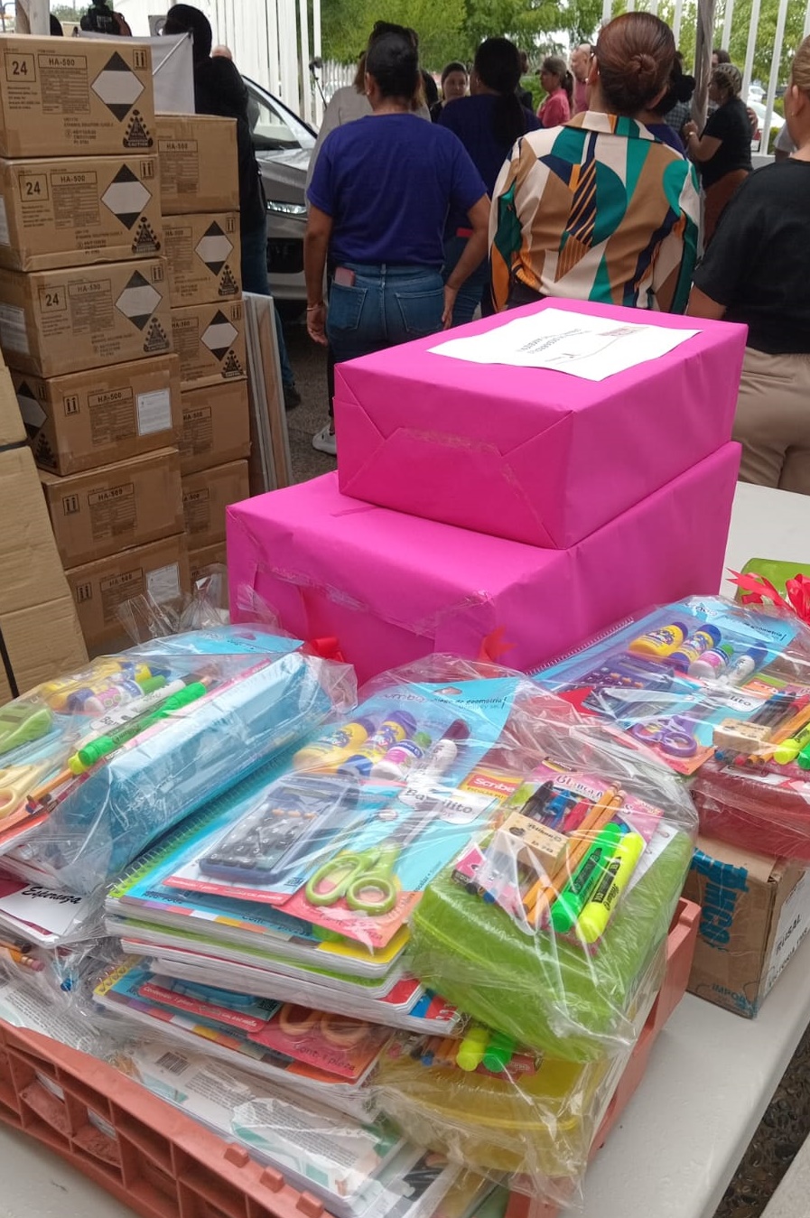 La colecta de útiles escolares estuvo encabezada por el alcalde Eduardo Abraham Gattás Báez, acompañado de su esposa, la Sra. Lucy de Gattás, presidenta del Sistema DIF Victoria.