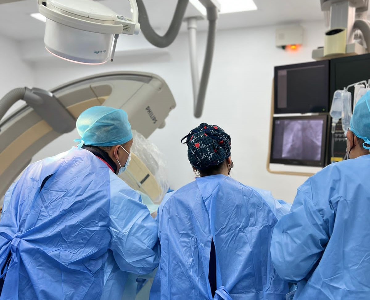 Es un área altamente especializada en donde al paciente se le introduce un catéter en la ingle, a través de la arteria femoral superficial y llega hasta el corazón, procedimiento que permite tratar el infarto agudo y lo que da la posibilidad de salvar vidas.
