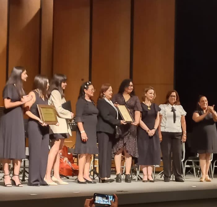 Y con la representación del Alcalde Mario López, la titular de la SECUDE, Genoveva Hi González y la Directora de Cultura Larisa López Carrillo entregaron un reconocimiento póstumo a la viuda del Mtro. Juan Francisco Batalla Bahena, cuyo nombre, por decisión del Cabildo, llevan la Orquesta Sinfónica Infantil y Juvenil de Matamoros, Tamaulipas.