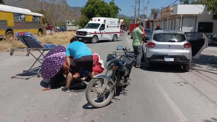 El accidente ocurrió en la calle Canario y bulevar las Palmas de la colonia Siete de Noviembre, lugar a donde acudieron paramédicos de Cruz Roja para atender a Jaime “N” quien resultó lesionado y después de haber sido valorado fue llevado al nosocomio mencionado.