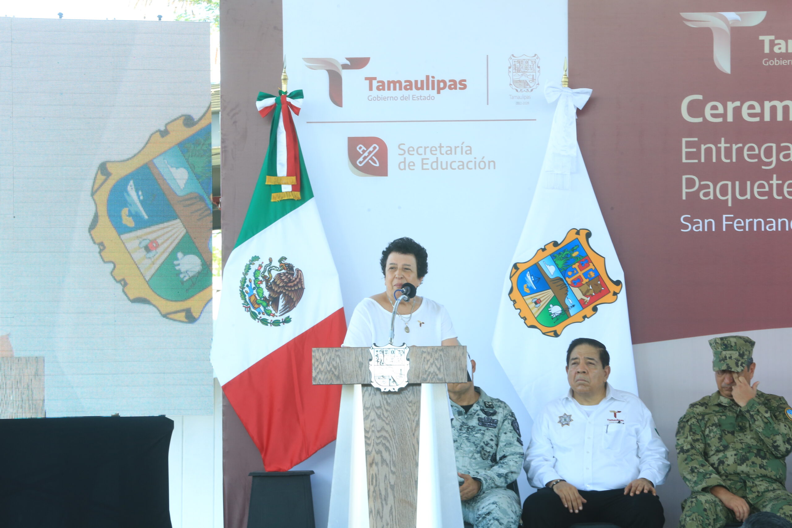 Acompañaron al gobernador: la presidenta municipal de San Fernando, Maybella Ramírez Saldívar; Francisco Peña Castro, director de la Escuela Primaria “Alberto Carrera Torres”; el diputado Eliphaleth Gómez Lozano y Jorge Miguel Cota Katzenstein, representante del CEN del SNTE.