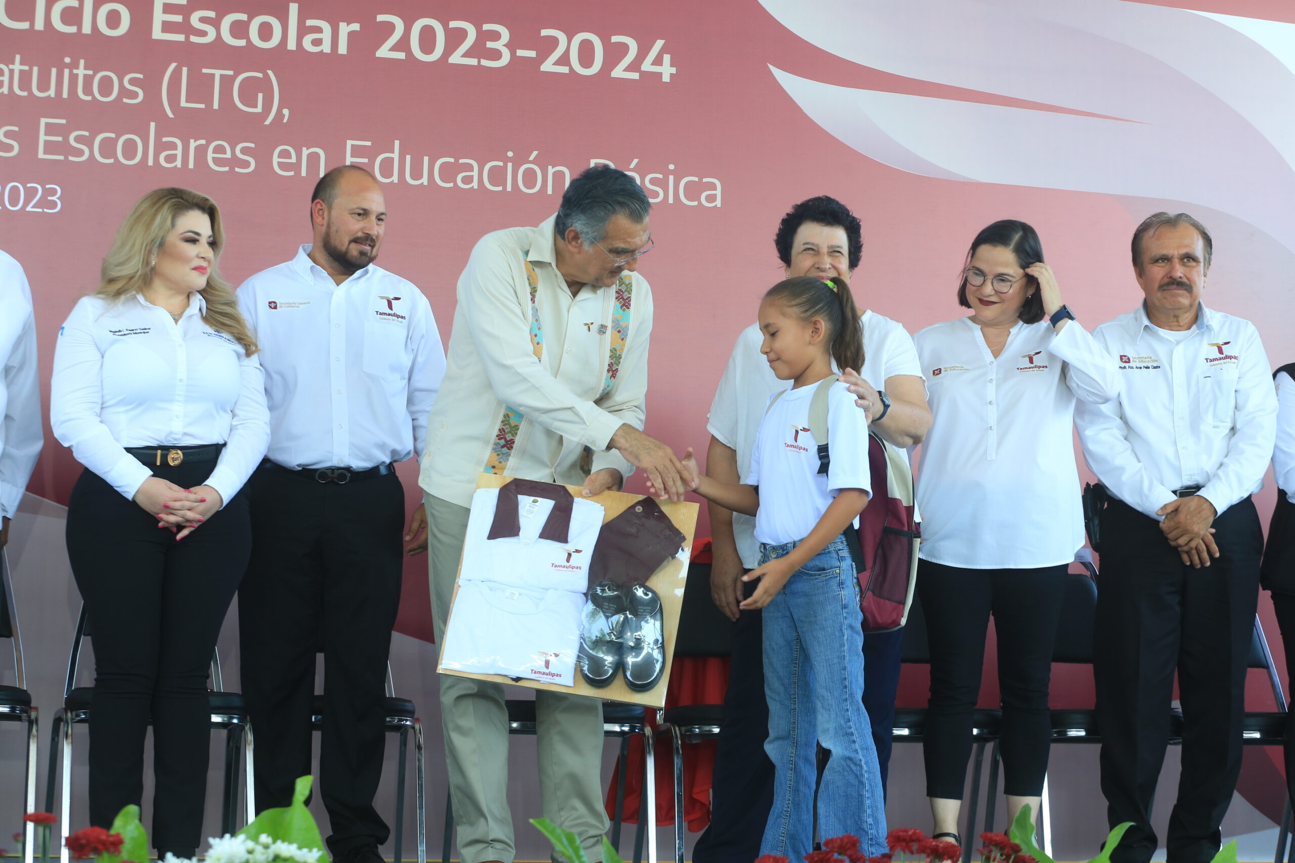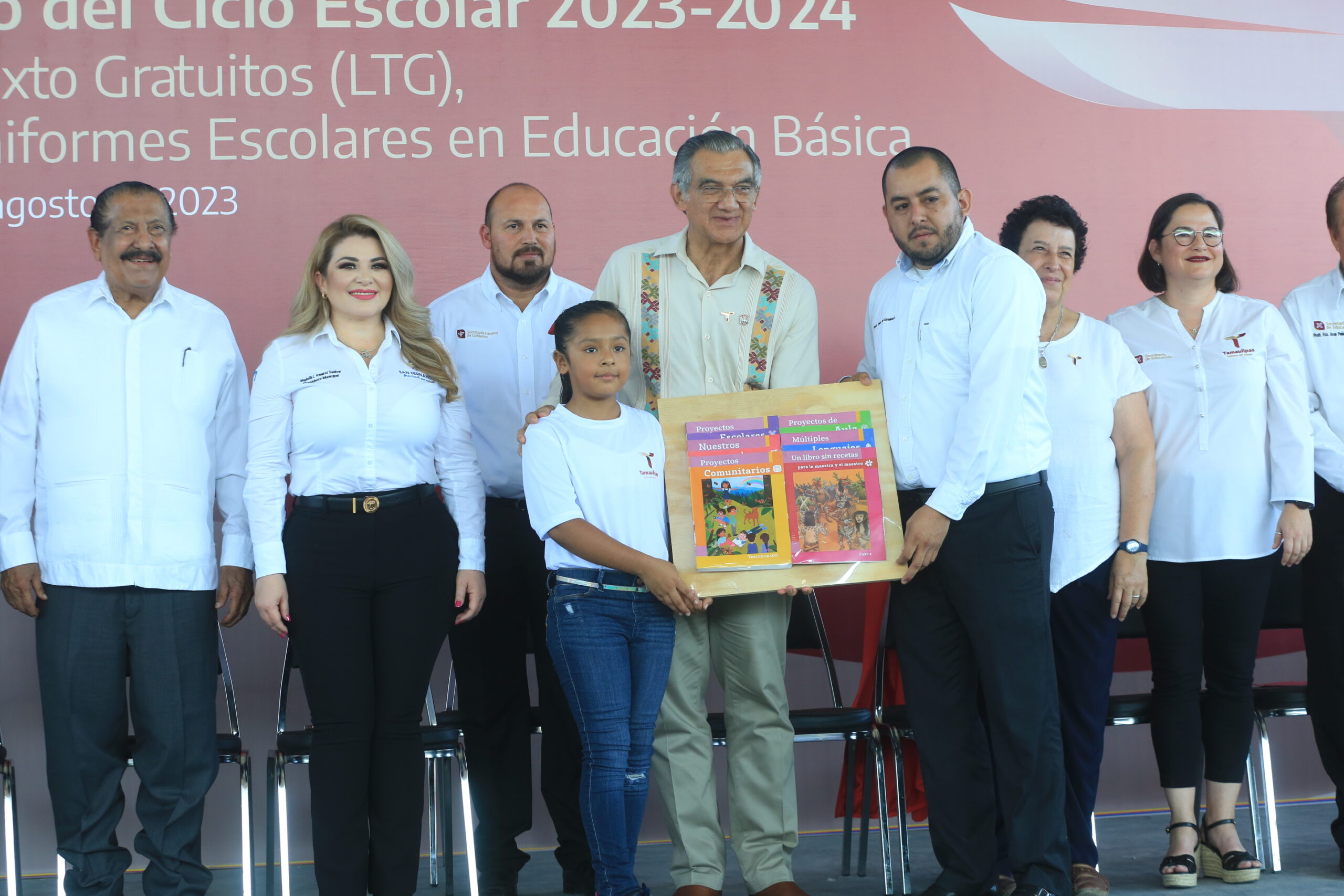 SAN FERNANDO, TAMAULIPAS, 28 DE AGOSTO DE 2023.- En el inicio del ciclo escolar 2023-2024 y la entrega simbólica de más de tres millones de libros de texto gratuitos y 48 mil 937 paquetes de útiles y uniformes escolares, el gobernador Américo Villarreal Anaya llamó a conjuntar voluntades entre magisterio, padres de familia, alumnas, alumnos y la sociedad, a fin de lograr mejores niveles de vida y poder entregar mejores generaciones.
