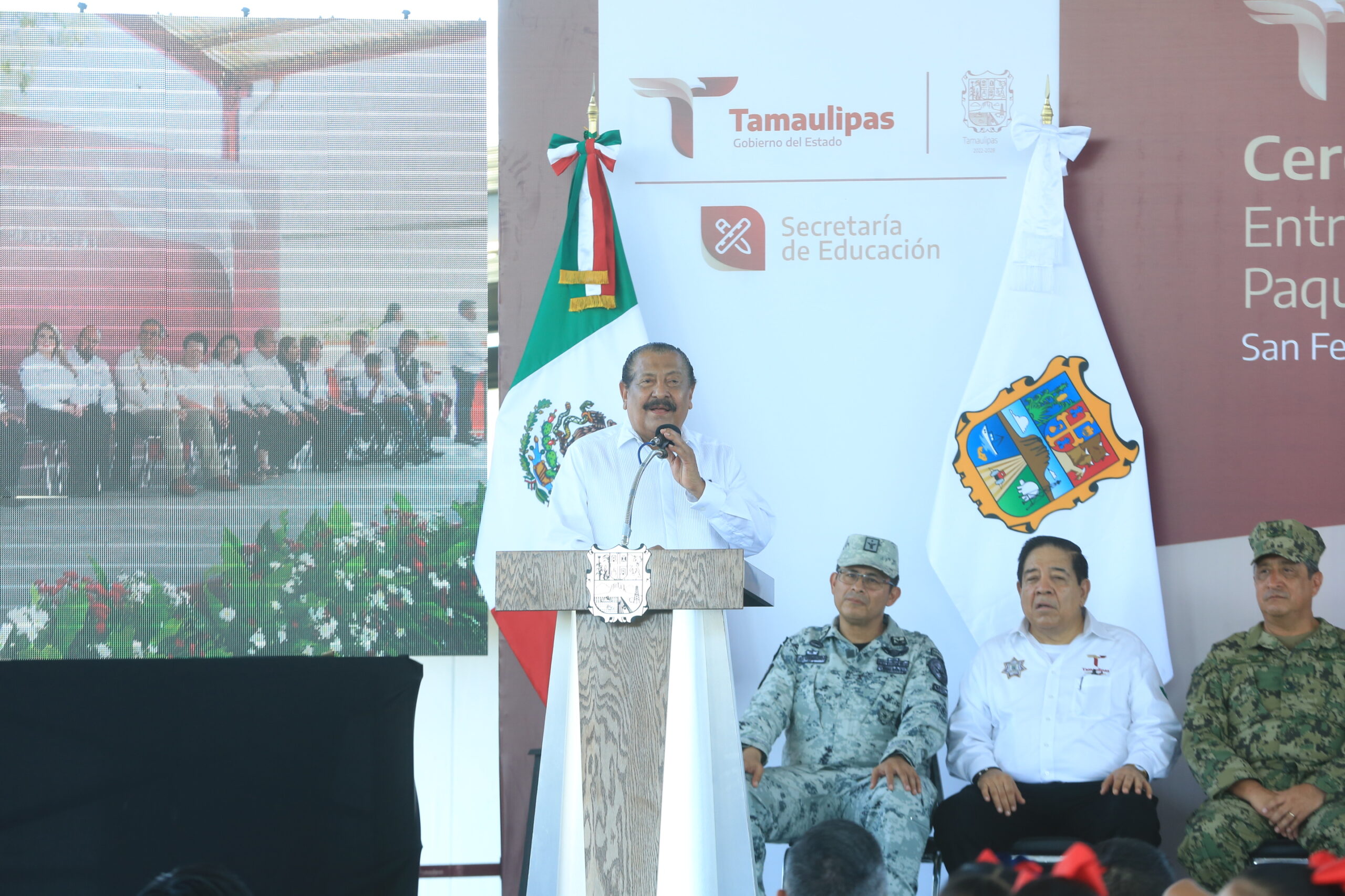 Previo a la ceremonia celebrada en el patio de la escuela “Alberto Carrera Torres”, el gobernador hizo un enlace en vivo con la conferencia del presidente Andrés Manuel López Obrador, a quien le reiteró que en Tamaulipas, “estamos convencidos que para transformar, necesitamos educar, educar y continuar con la educación” y refrendó su apoyo irrestricto a la Nueva Escuela Mexicana.