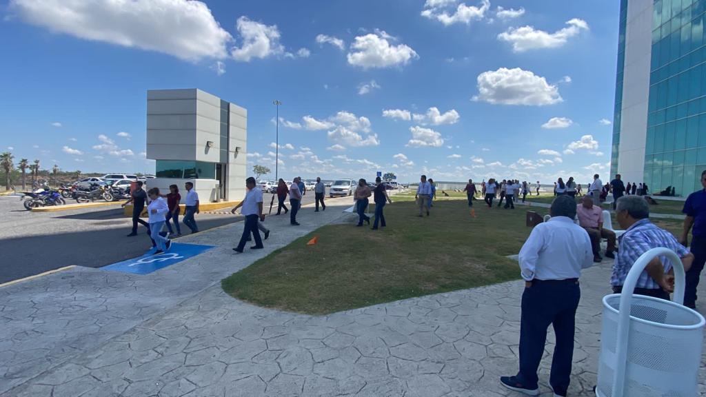 En la Torre Bicentenario el simulacro por incendio inició de acuerdo a lo programado a las 11:00 de la mañana con la participación de 196 brigadistas logrando la evacuación en 14:55 minutos la evacuación de dos mil 264 con una población flotante dentro del edificio de cien personas y una persona atendida por lesión en una pierna.