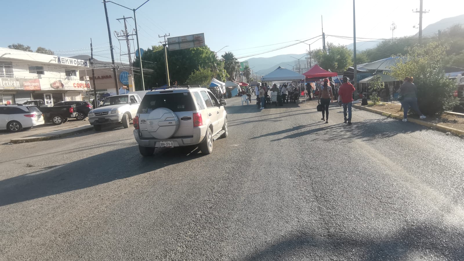 El cierre a la vialidad con una gran cantidad de toldos y carpas, aplica en el tramo de la Secundaria General Número Uno Adolfo Ruiz Cortines hasta el acceso al Hospital Infantil.