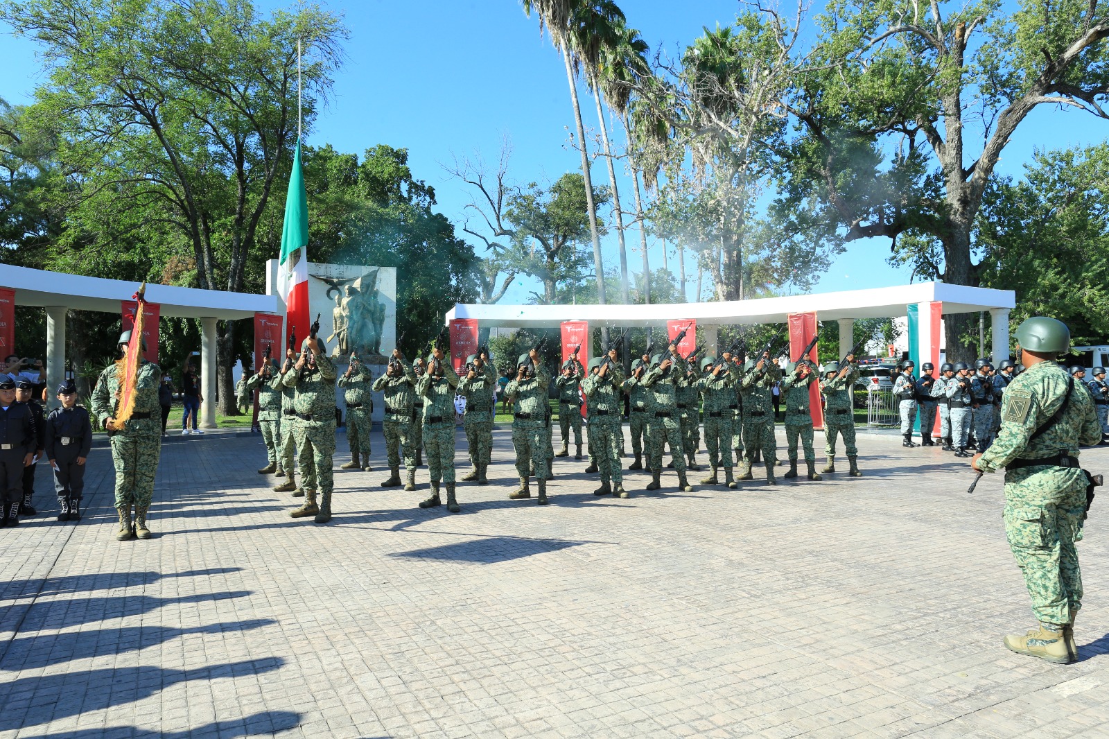 Al pie del monumento de los Niños Héroes situado en el Paseo Pedro José Méndez de