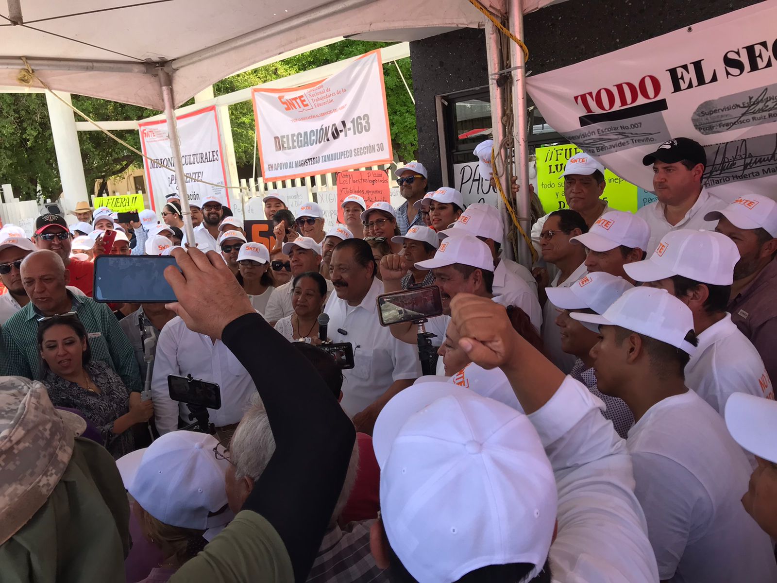 “Si no hay ninguna respuesta para el 15 de septiembre, había pensado mañana convocar a los maestros para este viernes, pero no, vamos a hacerlo para el día patrio, el día 15, a la mejor nos vamos a juntar todos los maestros de Tamaulipas, en donde vaya a estar el Gobernador dando el Grito de Independencia”, citó.