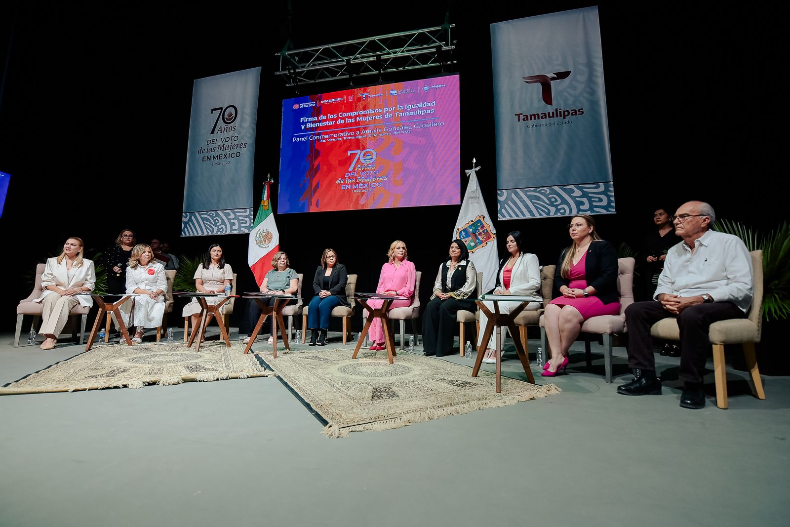 En el marco del 70 aniversario del voto de las mujeres en México y con la asistencia de la presidenta del Instituto Nacional de las Mujeres, (INMUJERES) Nadine Gasman Zylbermann, se firmó este compromiso por parte de la secretaria de Bienestar Social, Verónica Adriana Aguirre de Los Santos, en representación del mandatario estatal y la directora general del Instituto de las Mujeres en Tamaulipas, Dianaluz Gutiérrez González.