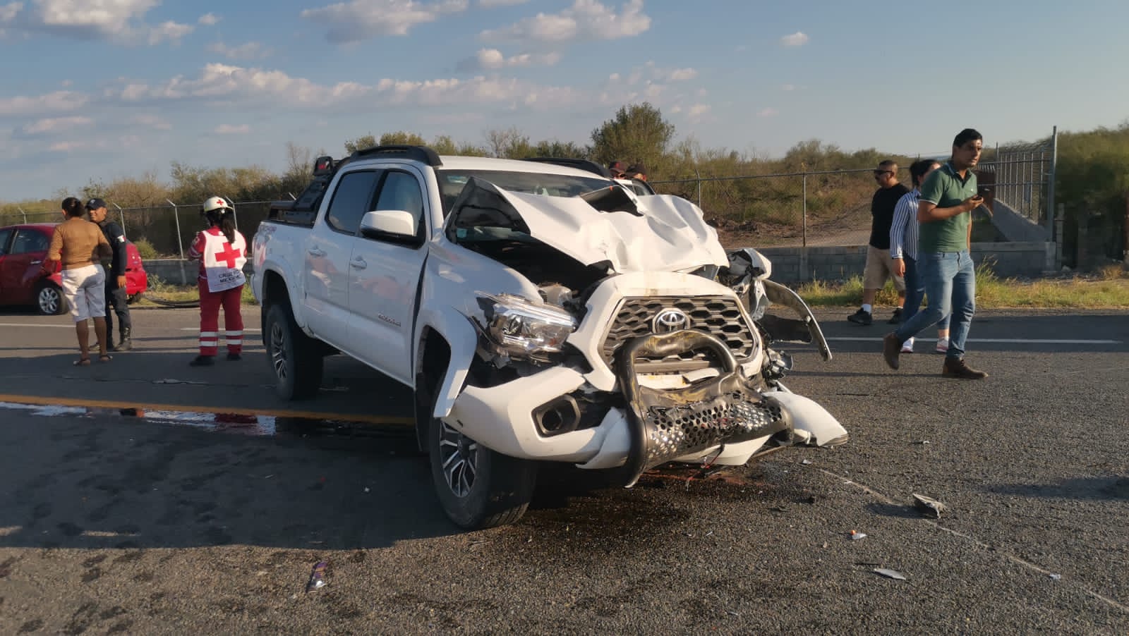 Finalmente en el múltiple accidente también se vio involucrada una camioneta de reciente modelo de la marca Toyota tipo Tacoma en color blanco, la cual quedó con un fuerte golpe en la parte frontal.