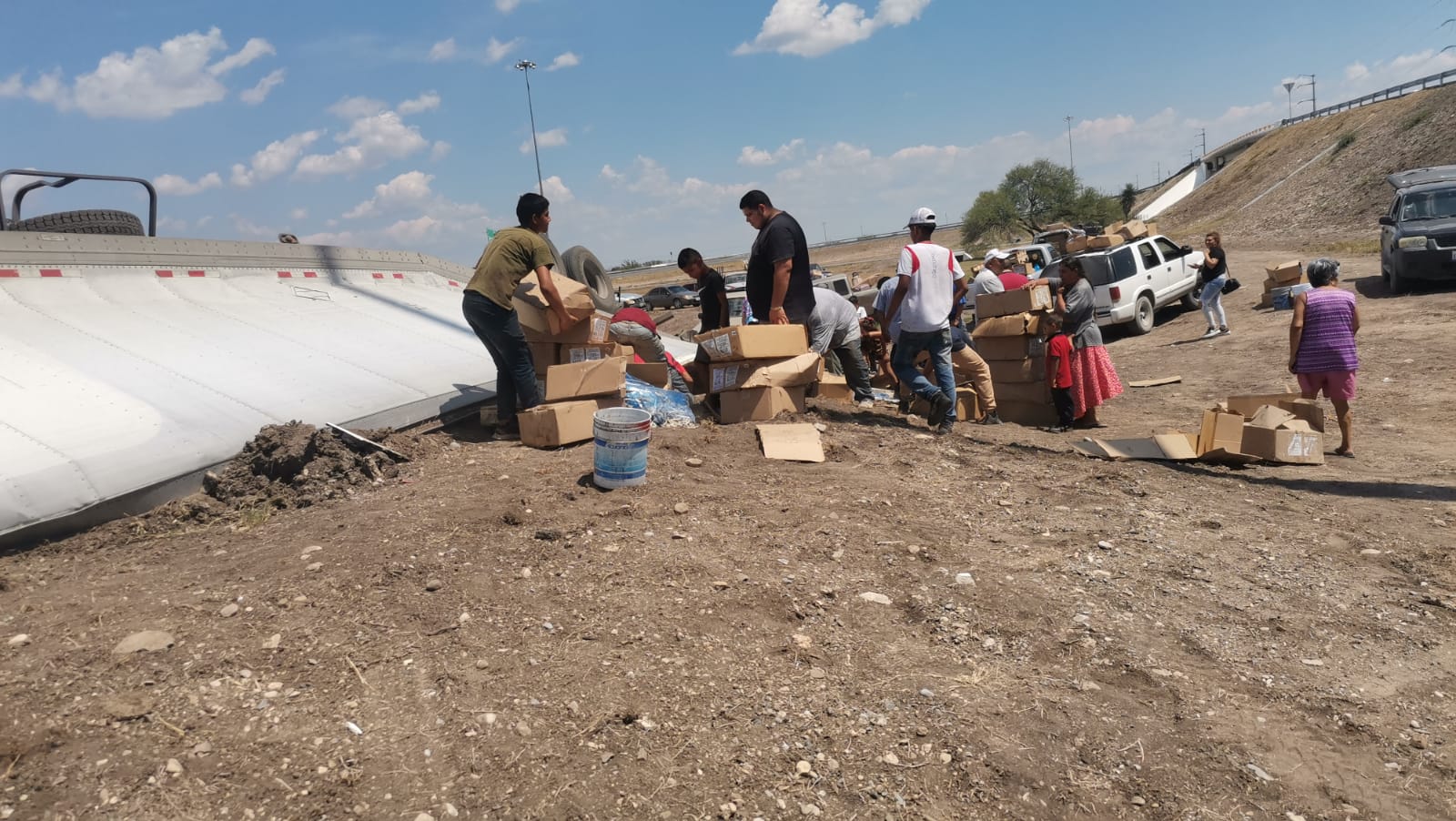 Cabe señalar que al lugar acudió una gran cantidad de personas para hacer “rapiña” con la mercancía que transportaba la pesada unidad.