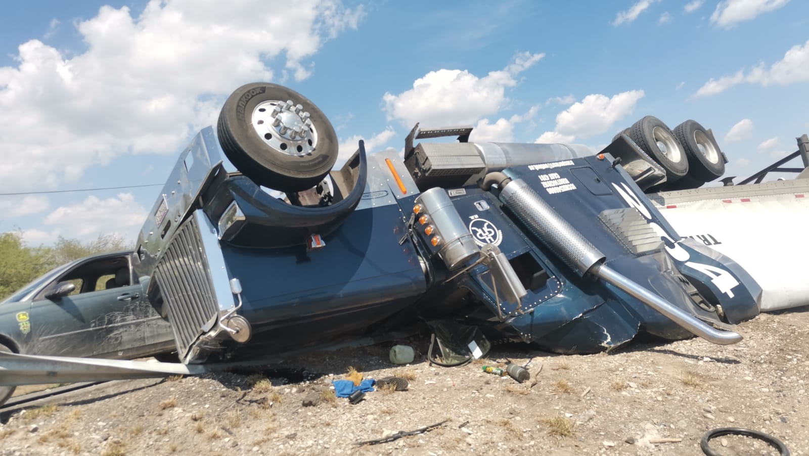 Al transitar por el “caracol” que se encuentra en el entronque con la carretera a Soto la Marina debido presuntamente a una falla mecánica el tráiler desvió su trayectoria hacia su lado izquierdo terminando por volcar.