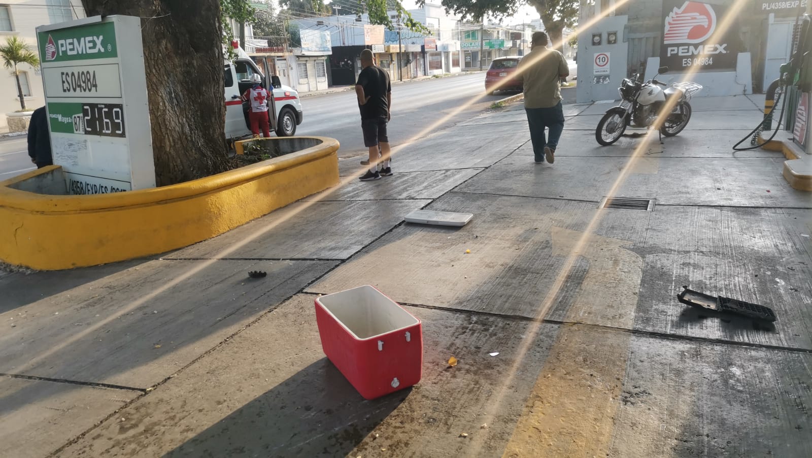 Tras ser impactado por el automóvil el motociclista salió proyectado y cayó al suelo sobre la superficie de rodamiento vehicular mientras que la motocicleta sin control desvió su trayectoria hacia el lado derecho y se estrelló contra una gasolinería.