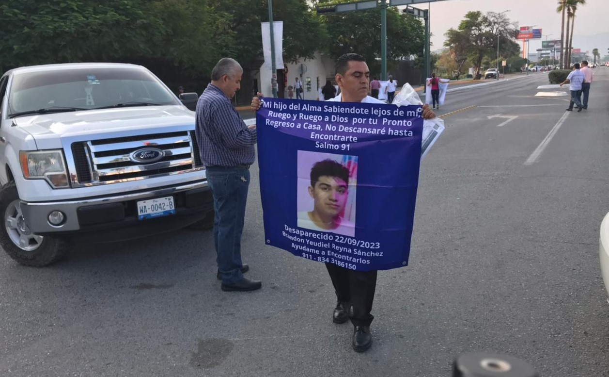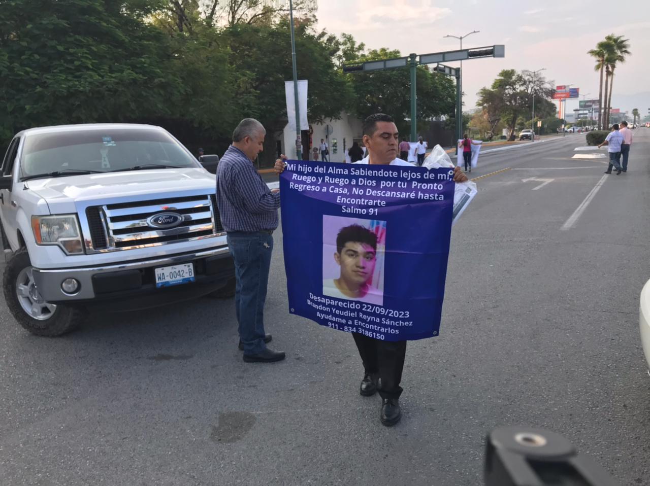 Ciudad Victoria, Tamaulipas (24 de octubre de 2023).- Con vehículos particulares, y portando cartulinas y copias del Boletín de Búsqueda emitido por la Fiscalía General de Justicia del Estado, esta mañana familiares y amigos de un joven de 19 años de edad que fue reportado como desaparecido el mes de septiembre cerraron la vialidad del Bulevar Tamaulipas frente a Casa de Gobierno.
