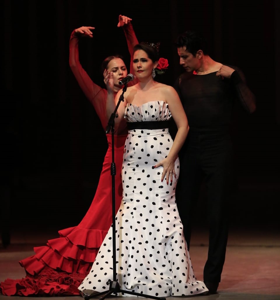 El espectáculo combina la música y danza española, deleitó al nutrido público con un repertorio clásico de compositores como Manuel Falla, Federico García Lorca, Joaquín Rodrigo, así como