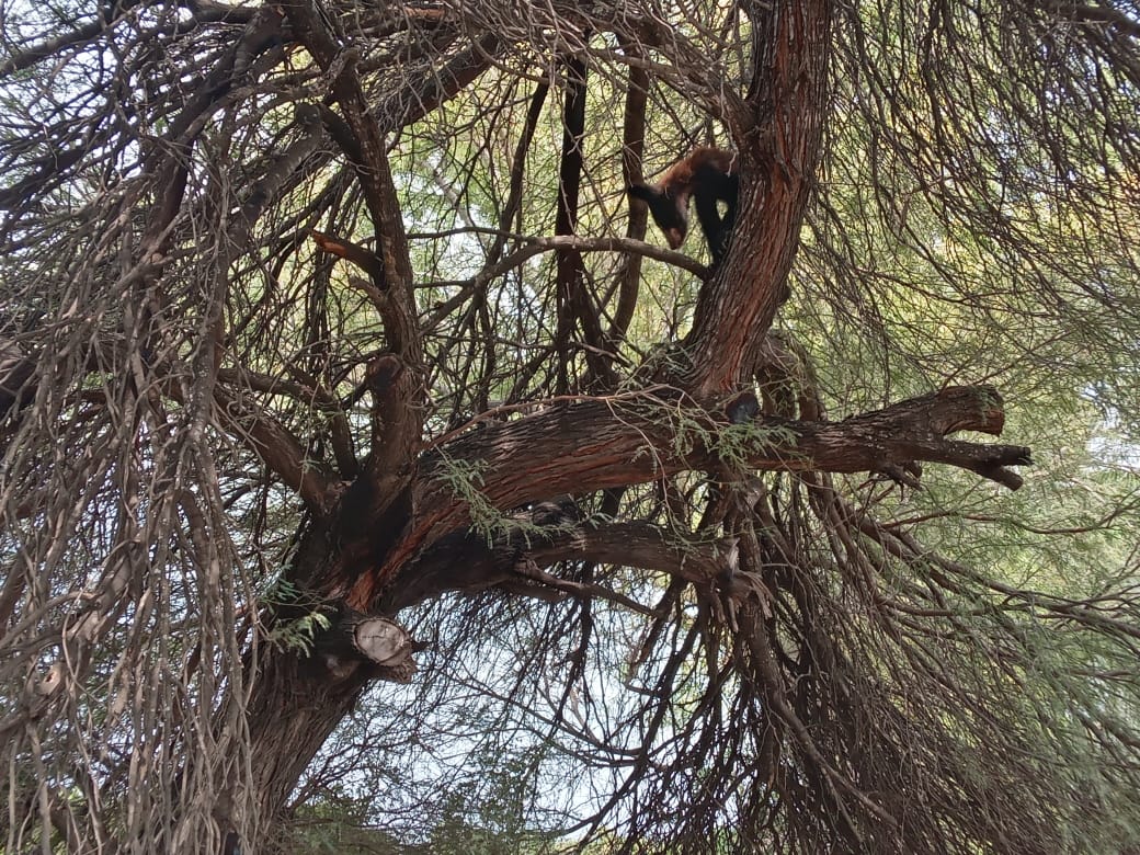 Debido a que el animal, quien se localizó arriba de un árbol, se encontraba deshidratado, se le aplicaron también vitaminas y suero.