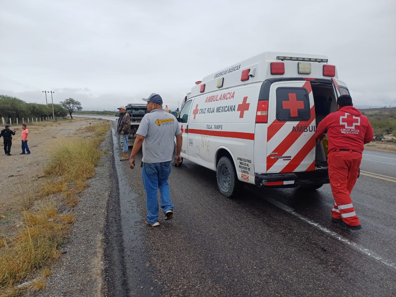 TULA, TAMAULIIPAS, 10 DE OCTUBRE DE 2023.- Dos personas perdieron la vida mientras que tres menores resultaron lesionados después de volcarse la camioneta en que viajaban.