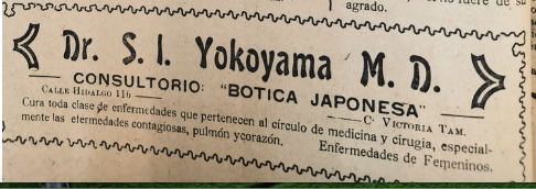 Aunque pocos, varios migrantes japoneses tuvo una temporal presencia en la capital tamaulipeca. A finales de la segunda década del siglo XX, abrió sus puertas la Botica Japonesa en la calle Hidalgo 116, atendida por el doctor S. I. Yokoyama M.D. con su respectivo consultorio.