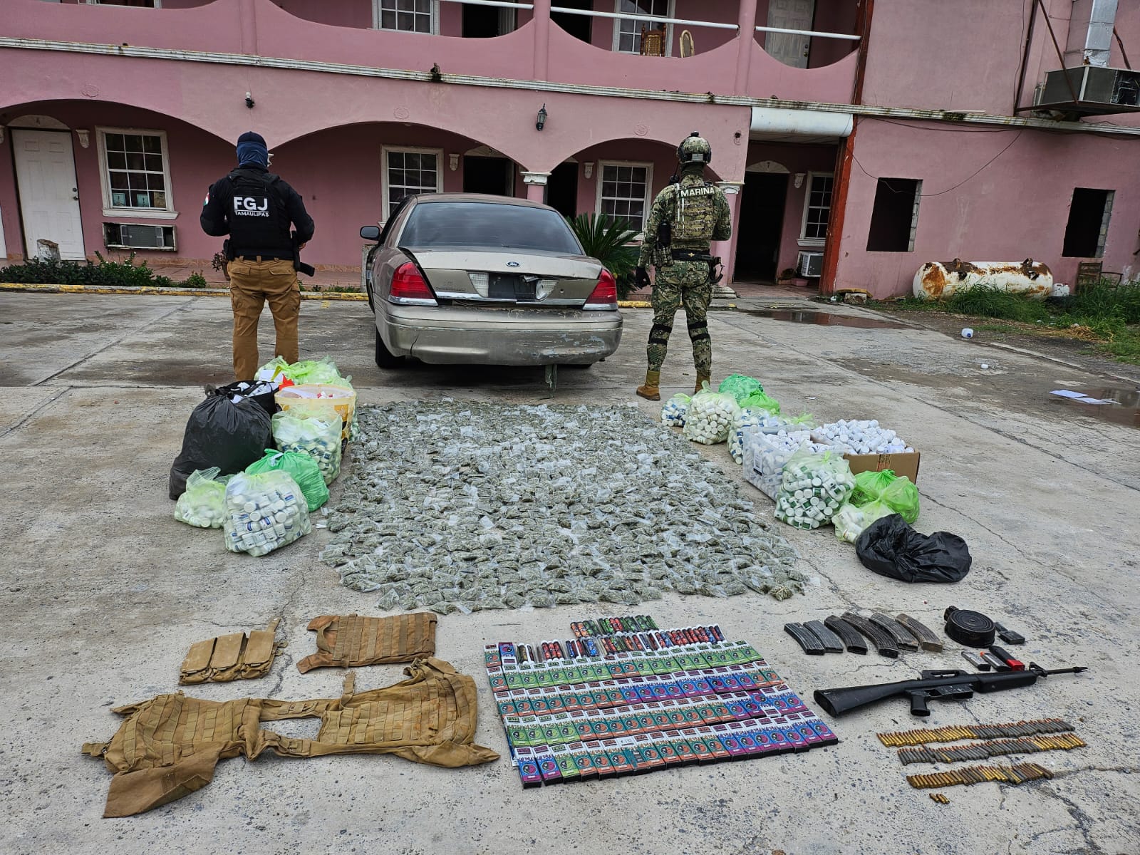 Reynosa, Tamaulipas (6 de octubre de 2023).- La Fiscalía General de Justicia de Tamaulipas informa que, derivado de labores de inteligencia e investigación conjuntos con la Secretaría de Marina, en Nuevo Progreso, Río Bravo, se desmanteló un centro de monitoreo irregular operado por un grupo delictivo y asegurados medicamentos no regulados, así como bolsas plásticas con marihuana.