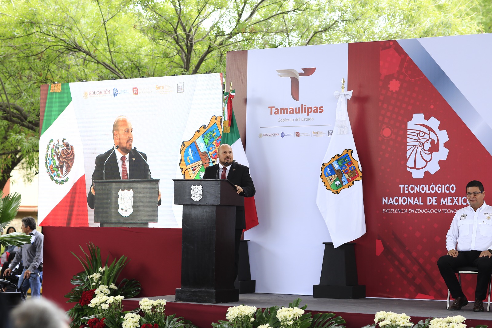 CD. VICTORIA, TAMAULIPAS, 16 DE OCTUBRE DE 2023.-  A nombre del gobernador, Américo Villarreal Anaya, el secretario general de Gobierno, Héctor Villegas González reiteró el compromiso para impulsar en Tamaulipas una educación superior de calidad que contribuya a consolidar la transformación y convocó a los jóvenes estudiantes del Instituto Tecnológico Nacional de México Campus Victoria, a conducirse hacia el futuro con las mejores herramientas del conocimiento, la innovación y la técnica y al mismo tiempo formarse con los principios del