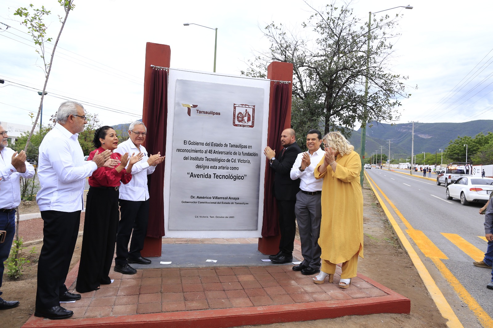 del Tecnológico, el secretario general de Gobierno, junto al director general del Tecnológico Nacional de México, Ramón Jiménez López, develó una placa con la que a partir de hoy se denomina Avenida Tecnológico, a la vialidad ubicada frente al plantel y entregó reconocimientos a tres maestros con más de 40 años de servicio: Yolanda Dávila López, Wilfrido Ponce De la Fuente y Renato Romo Ramírez.