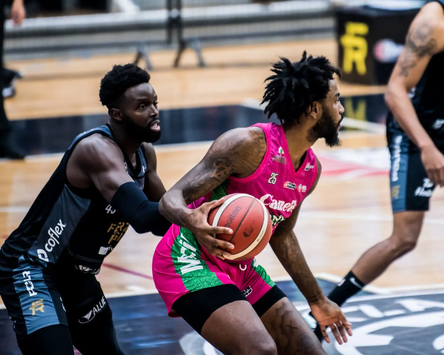 Monterrey, 18 de octubre del 2023.- Los Santos del Potosí dividieron la serie ante Fuerza Regia, al caer con marcador de 91 a 73 en el segundo juego de la serie, quedándose con récord 13 partidos ganados y 9 perdidos, manteniéndose en posición de playoffs de la temporada 2023 de la Liga Nacional de Baloncesto Profesional.