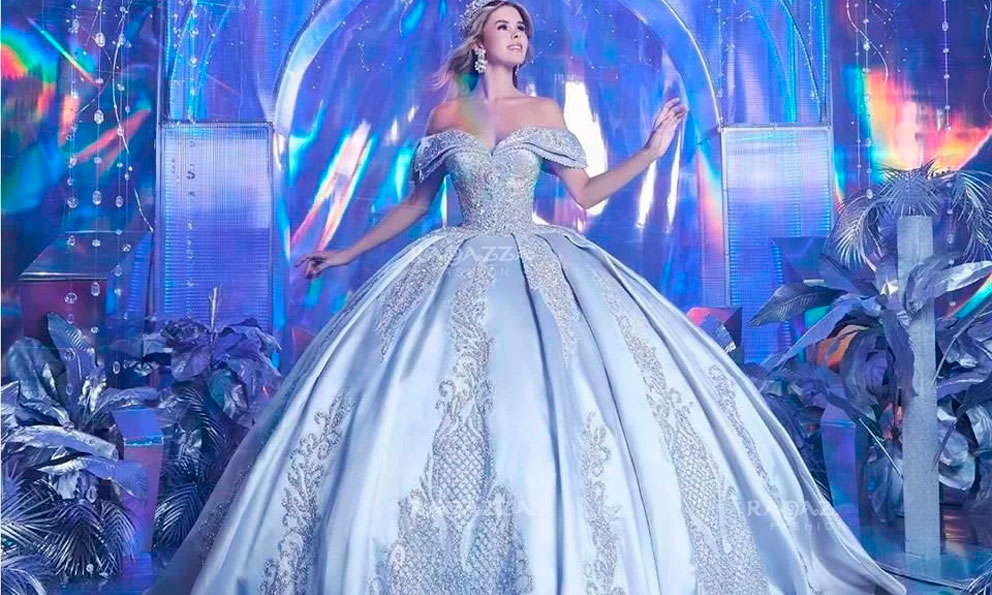 Este vestido, diseñado en tonos plateados con un corsé de bordados de pedrería y un brillante corazón con la silueta de Mickey, rinde homenaje a las inolvidables figuras femeninas de Disney. Emily Álvarez, hija del boxeador Canelo Álvarez, modelará el vestido en la Gala Intermoda Ragazza.