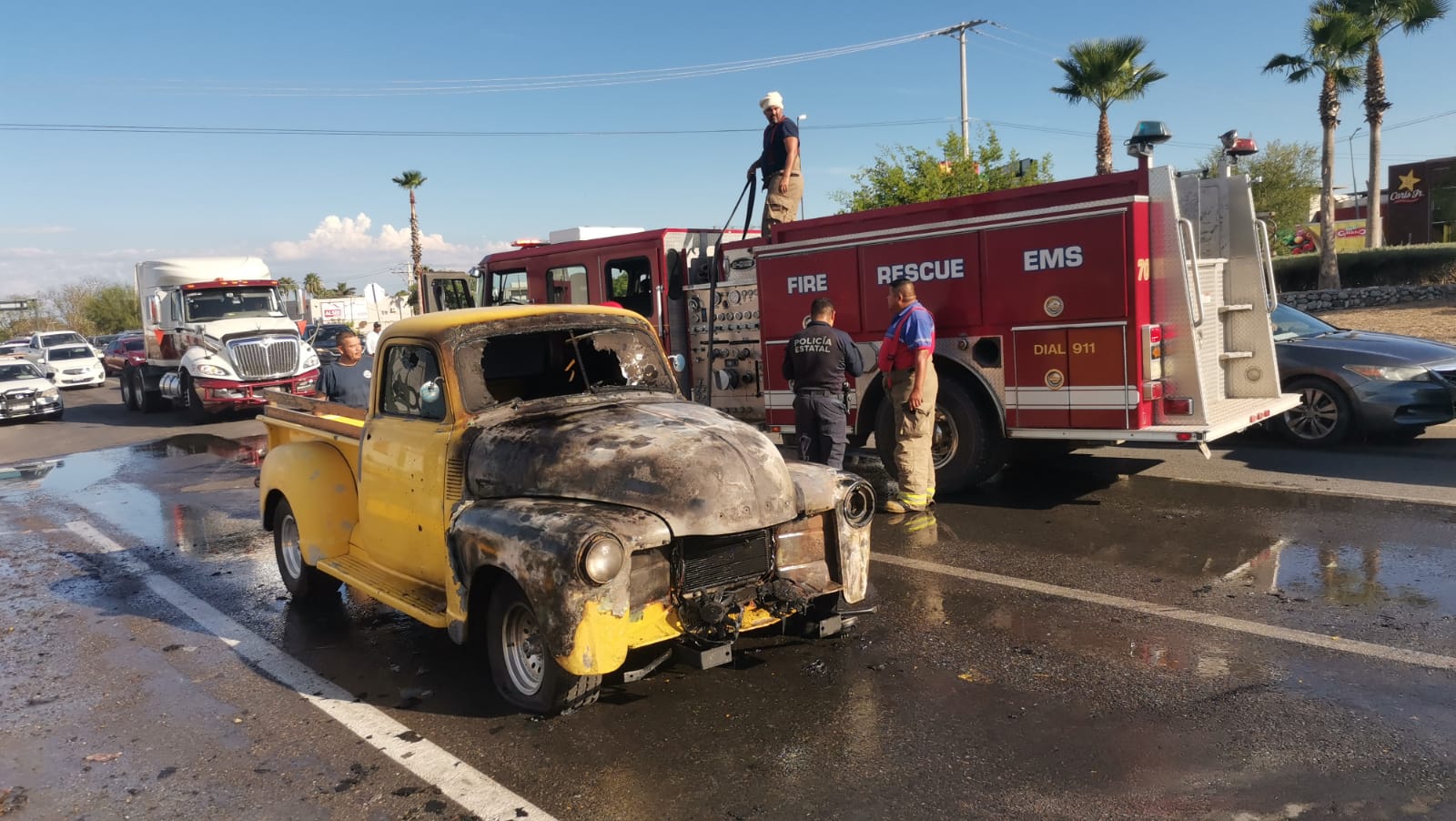 Se incendia camioneta de colección Chevrolet modelo 1950