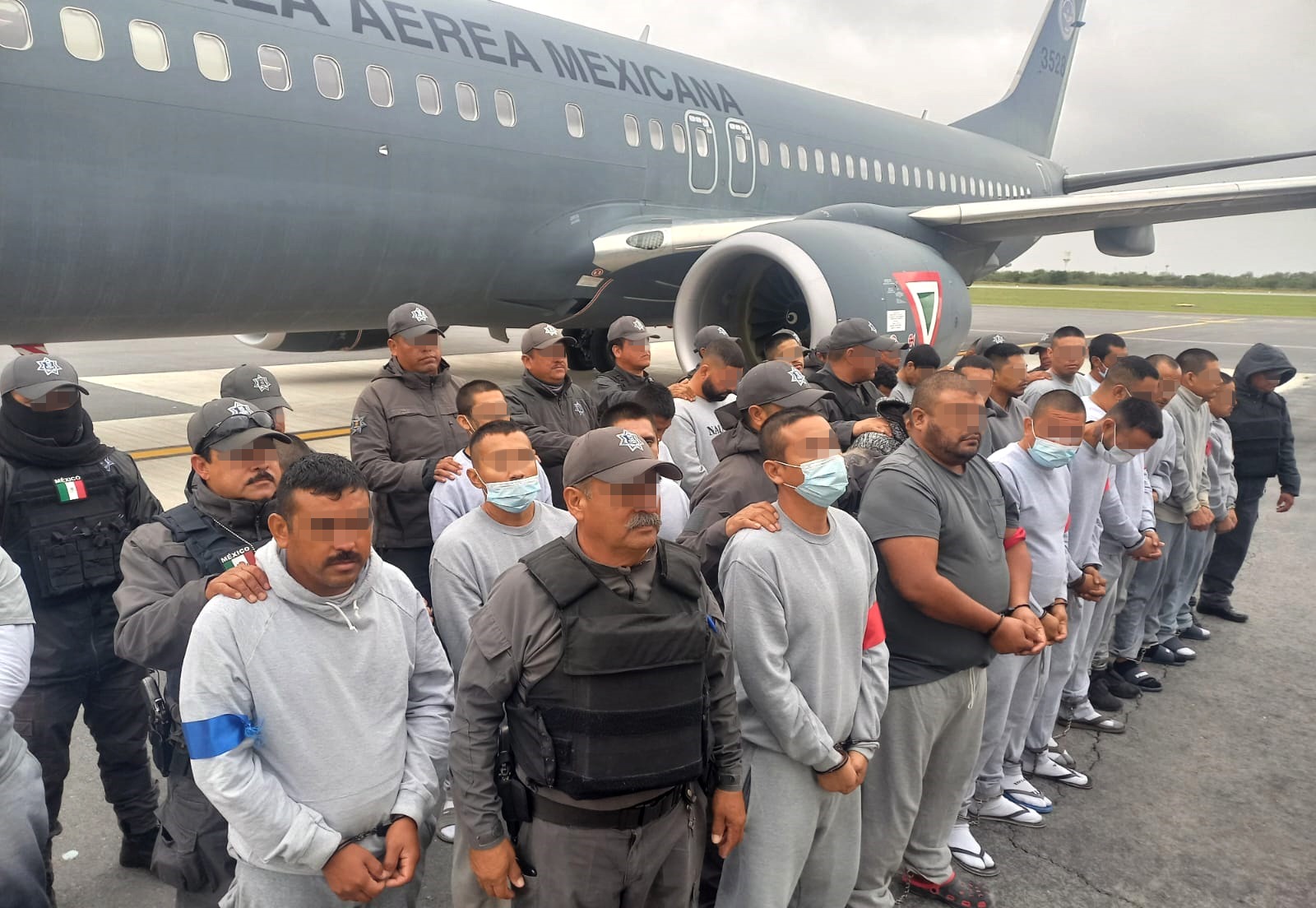 Las 67 personas que fueron trasladadas vía aérea provienen de los cinco Centros de Ejecución de Sanciones (Cedes) de Tamaulipas: siete de Nuevo Laredo; 16 de Reynosa; 16 de Matamoros; 14 de Altamira y 14 de Ciudad Victoria.