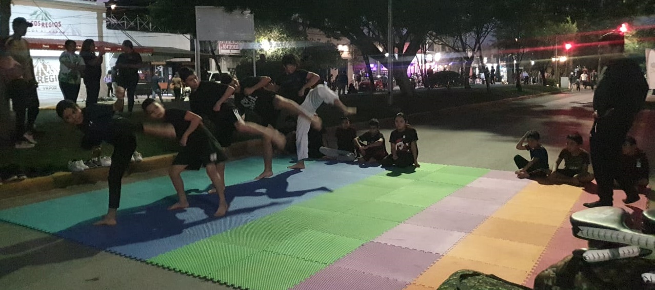 Rutinas de pateo y rompimiento de tabla ejercieron exponentes del Centro Luz y Arte, ubicado en la colonia Ampliación Linda Vista, así como del Espacio Pannarti de la Colonia Benito Juárez y de la Unidad Militar, ante una importante afluencia de victorenses en la Avenida “Francisco I. Madero”.
