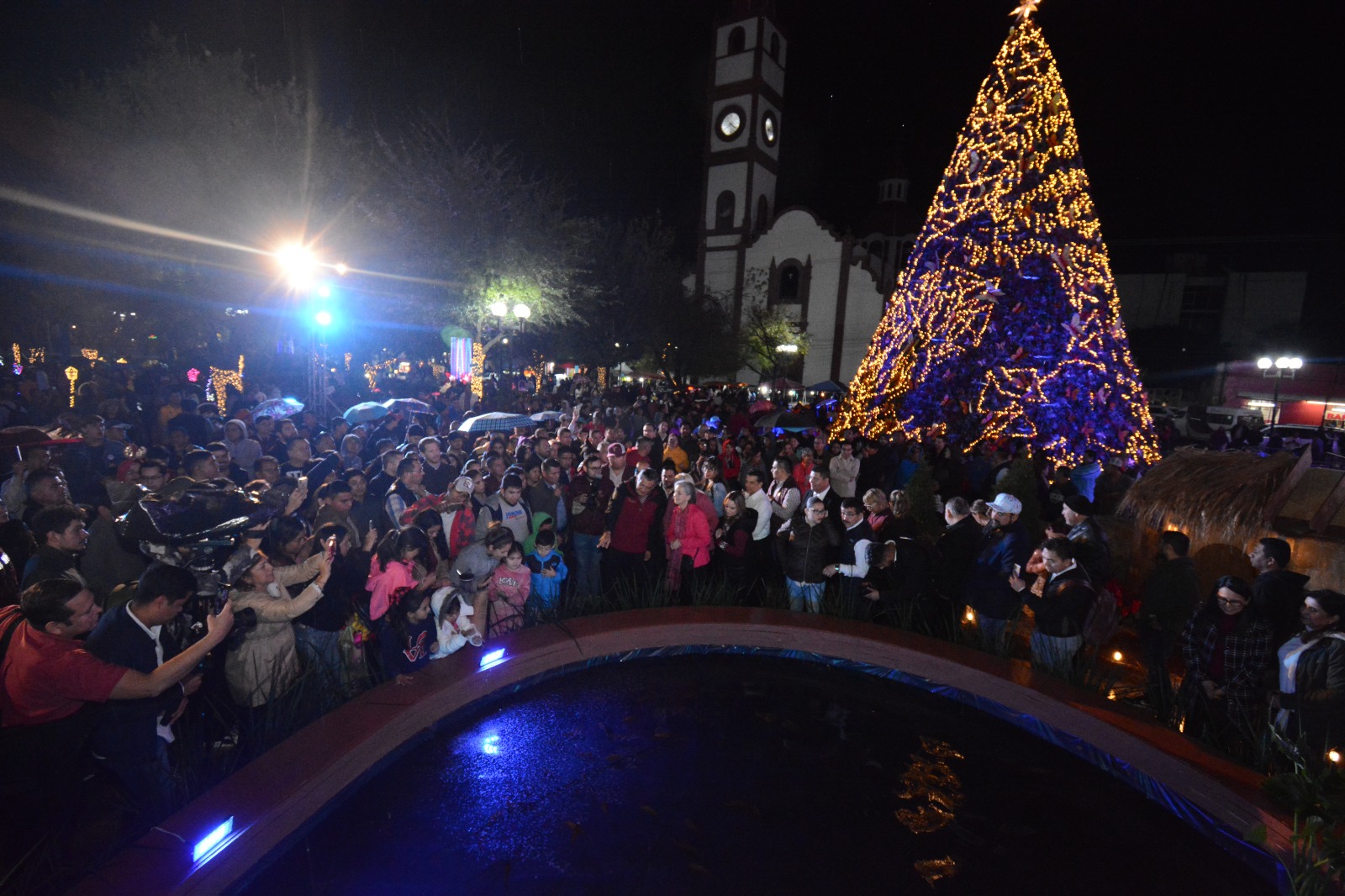 Con la ayuda de todos los presentes y tras realizar el respectivo conteo, llegó el momento esperado y se encendieron todas las luces que adornan el majestuoso pino navideño de 16 metros de altura y la Villa Navideña.