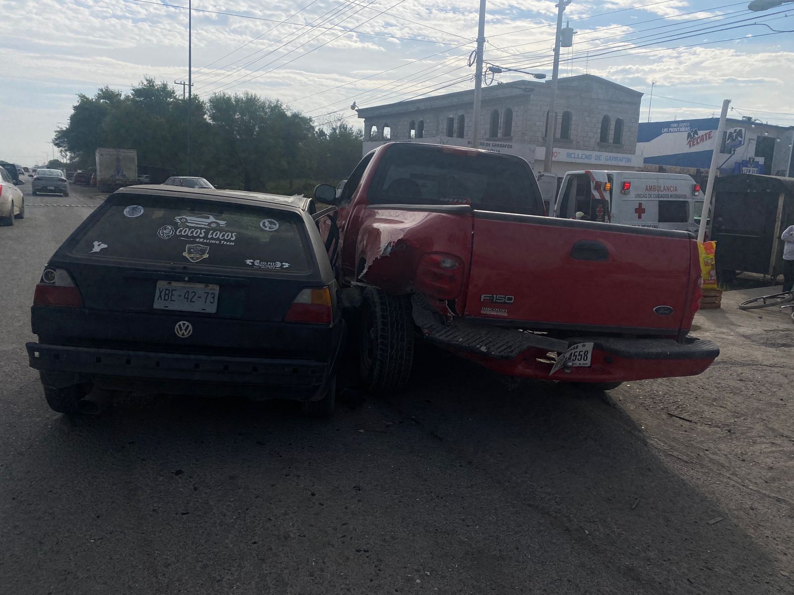 CD. VICTORIA, TAMAULIPAS, 2 DE DICIEMBRE DE 2023.- Por tratar de ganarle el paso a una camioneta, el conductor de un automóvil Volkswagen tipo Caribe terminó hospitalizado al ocasionar un accidente en la entrada al Fraccionamiento Viento Huasteco.