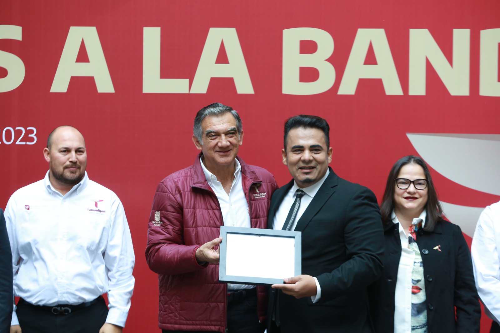 “Gracias señor gobernador, sin duda alguna su apoyo y reconocimiento abonan en el compromiso de hacer de nuestro estado un mejor lugar para vivir, un estado lleno de orgullo, un estado en bienestar, un estado, como usted lo destaca: altivo y heroico. Gracias por el respeto y el reconocimiento que, sin duda, aumentan nuestra voluntad y trabajo en la transformación de Tamaulipas”, mencionó.
