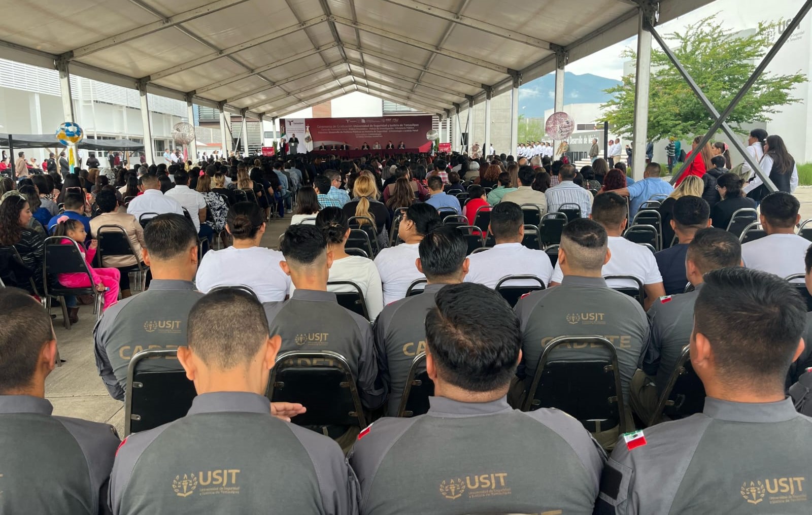 Cd. Victoria, Tamaulipas.- A nombre del gobernador Américo Villarreal Anaya, el secretario de Seguridad Pública, Sergio Hernando Chávez García hizo un público reconocimiento a quienes serán los encargados de la seguridad y procuración de justicia, luego de haber culminado sus cursos de formación inicial tanto cadetes quienes se integrarán a la Guardia Estatal, como a los policías de investigación y ministerios públicos, así como los estudiantes de licenciaturas y maestría de la USJT.