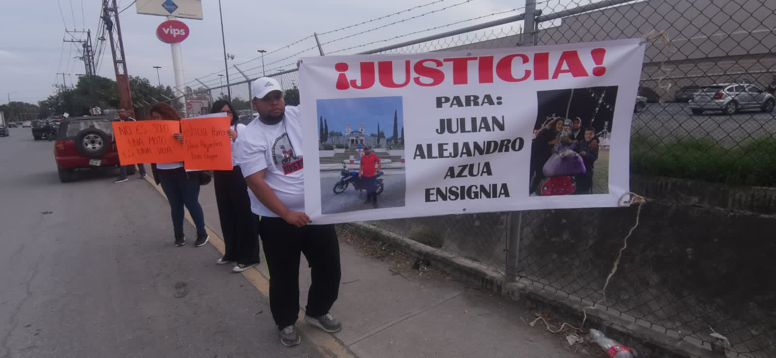 Ciudad Victoria, Tamaulipas (23 de diciembre de 2023).- Esta tarde se llevó a cabo una manifestación pacífica para exigir que se esclarezcan los hechos y se lleve ante la justicia al responsable del accidente vial donde el motociclista Julián Alejandro Azúa Ensignia de 31 años de edad, perdió la