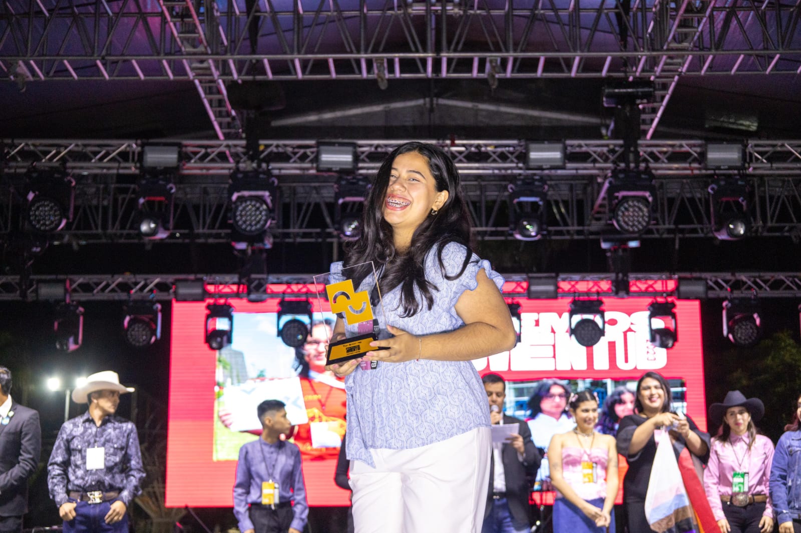Durante la ceremonia celebrada en el estadio Marte R. Gómez ante más de 3 mil asistentes, la directora general del Injuve Tamaulipas, Judith Katalyna Méndez Cepeda y el presidente municipal de Ciudad Victoria, Eduardo Gattás Báez, encabezaron la entrega del Premio Estatal de la Juventud y de un importante estímulo económico a los ganadores de cada categoría.