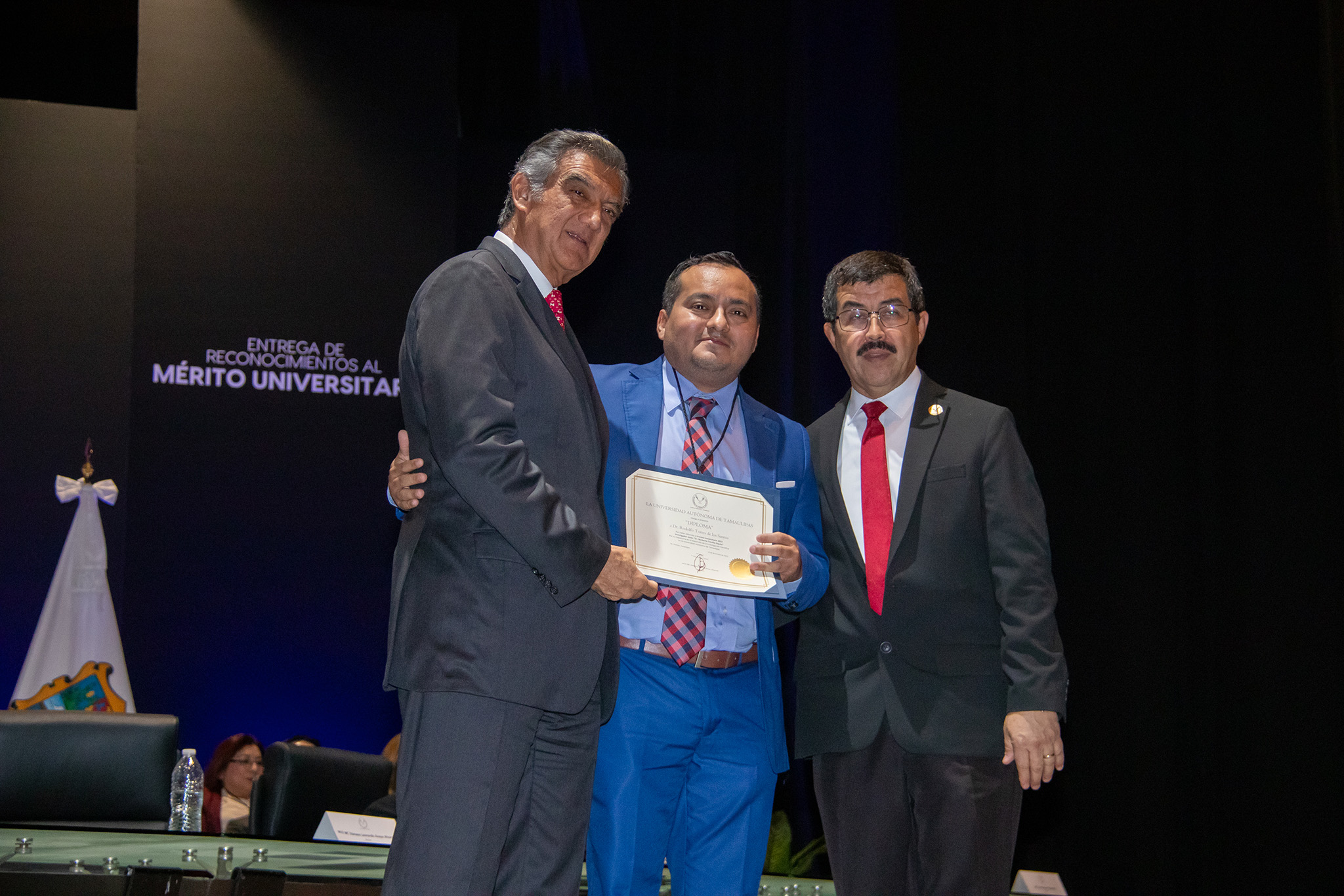 Ciudad Victoria, Tamaulipas (15 de diciembre de 2023).- El rector de la Universidad Autónoma de Tamaulipas (UAT), MVZ Dámaso Leonardo Anaya Alvarado, extendió sus felicitaciones a los docentes, investigadores, estudiantes y trabajadores que este año fueron merecedores del Reconocimiento al Mérito Universitario.