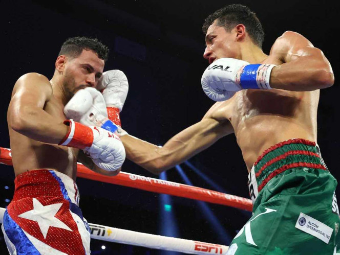El púgil mexicano Rafael Espinoza se impuso por decisión dividida sobre el cubano Robeisy Ramírez y conquistó el título peso pluma de la OMB