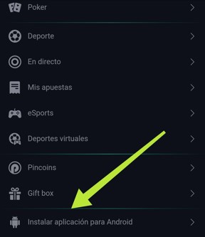- Ve al menú de Pin Up y busca el botón de descarga de la aplicación para Android.
